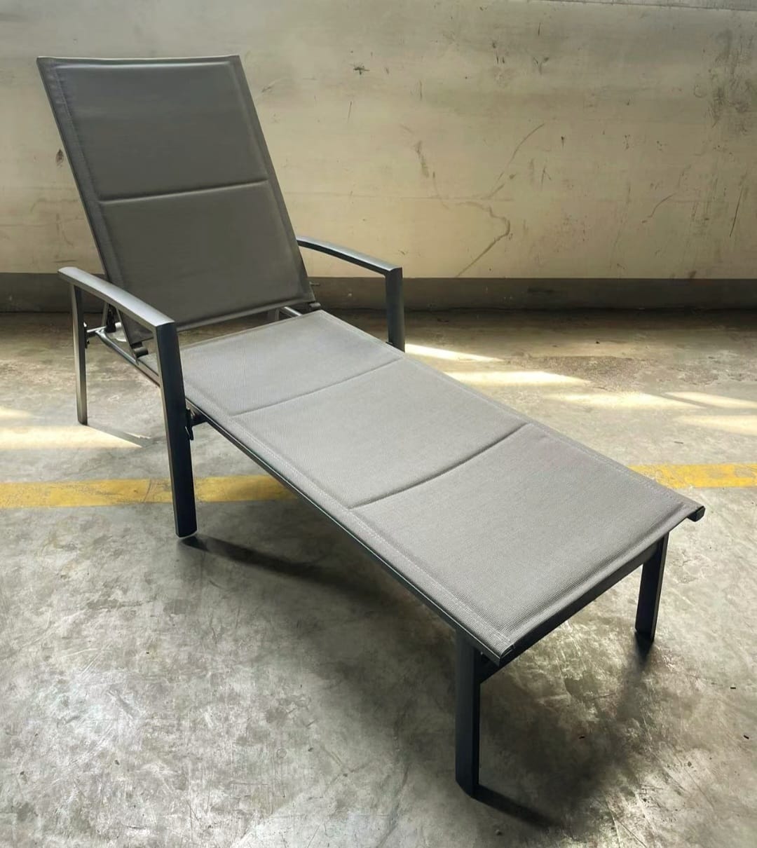 מיטת שיזוף עשויה מאלומיניום בשילוב בד טקסליין, מפנקת במיוחד עם גלגלים לניוד קל.