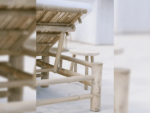 מיטת שיזוף מתכווננת בעיצוב כפרי, עשויה ממוטות במבוק, מגיעה עם מזרון עבה ונח