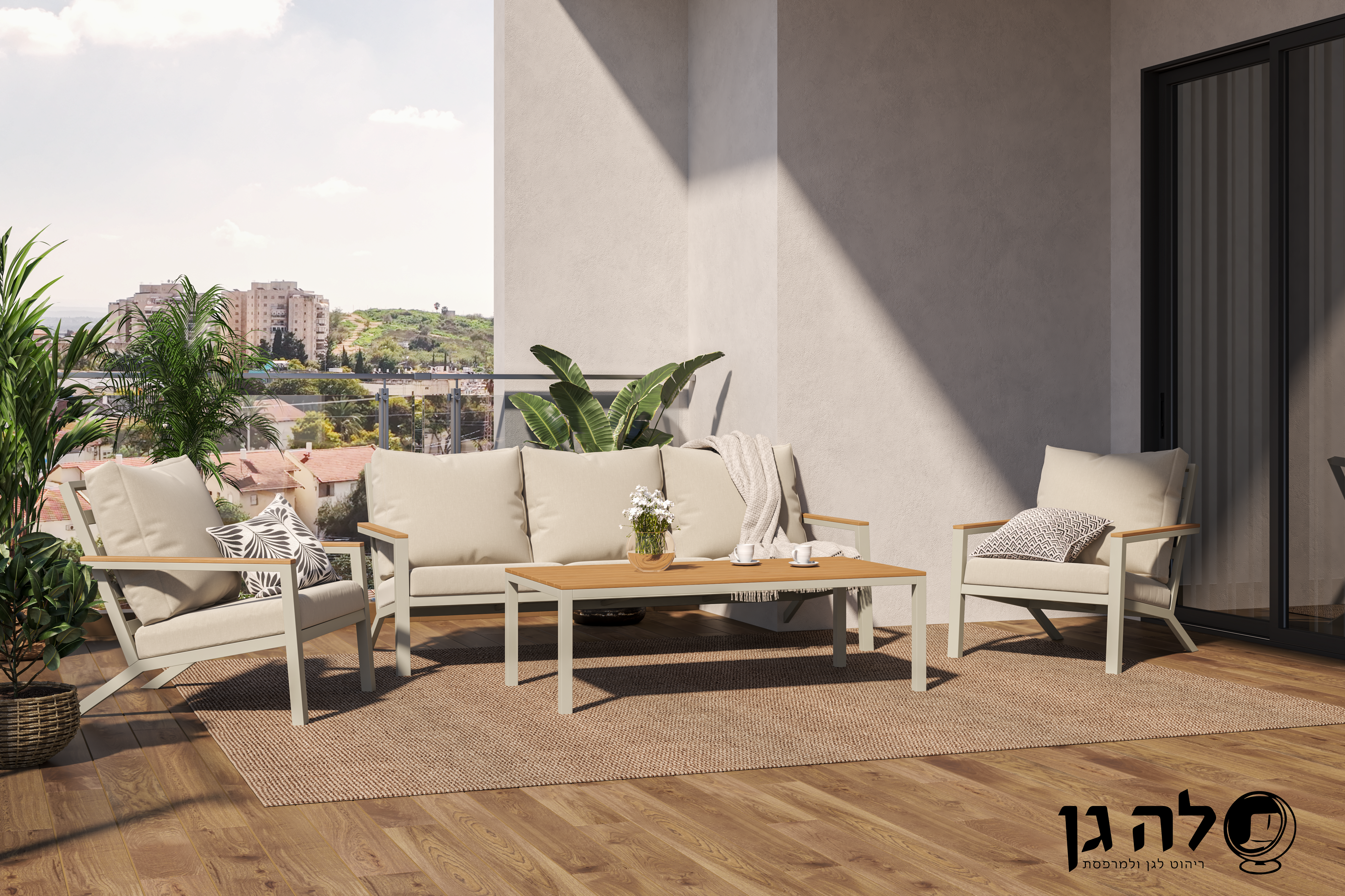 מערכת ישיבה יוקרתית ומפנקת מאלומיניום בעיצוב רטרו, אידיאלית לחצר ולפינות המתנה