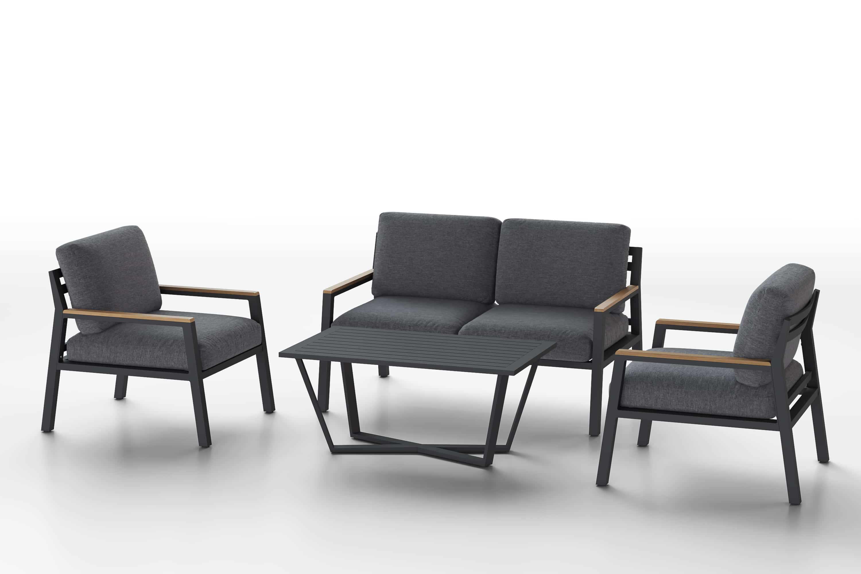 מערכת ישיבה מובחרת באיכות גבוהה ומפנקת מאוד עם עיצוב מדהים ויוקרתי ביותר. המערכת עשויה משלדת אלומיניום חזקה ומאסיבית. השלדה צבועה בתנור בשיטה מתקדמת במיוחד בשם Powder Coating בשלוש שכבות (כולל שכבת ANTISCRACH למניעת שריטות). המערכת עמידה מאוד לתנאי חוץ לאורך שנים בכל תנאי מזג האוויר וימות השנה!