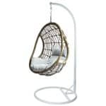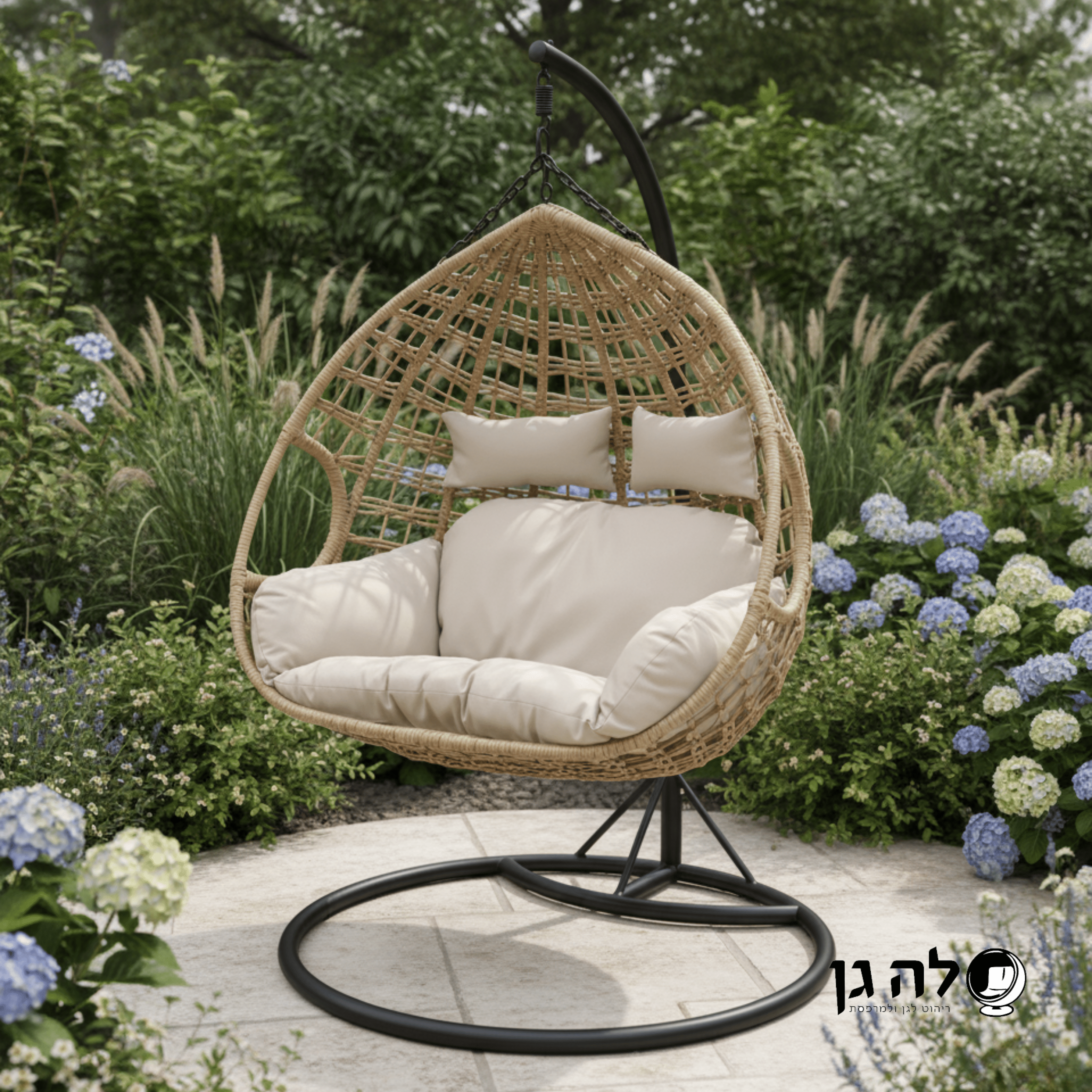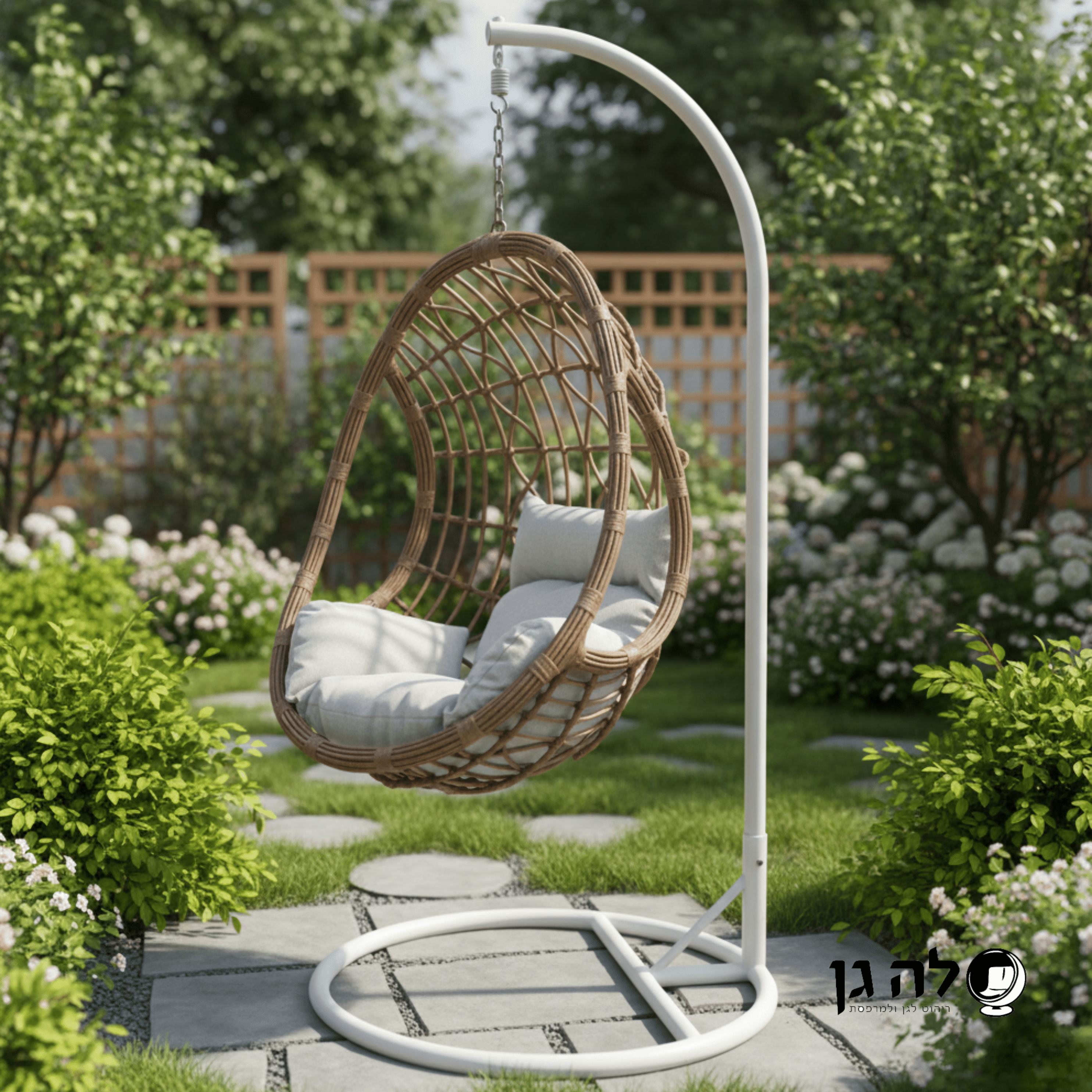 ערסל ראטן טבעי לגינה בעיצוב ביצה קליל ונושם, מושלם להוספת טאץ' דקורטיבי מרענן ומפנק למרפסת או לגינה. עשוי ראטן איכותי בגוון טבעי עם רגל מתכת לבנה ליציבות מרבית. נוח במיוחד לישיבה או רביצה נינוחה בכל עונות השנה.