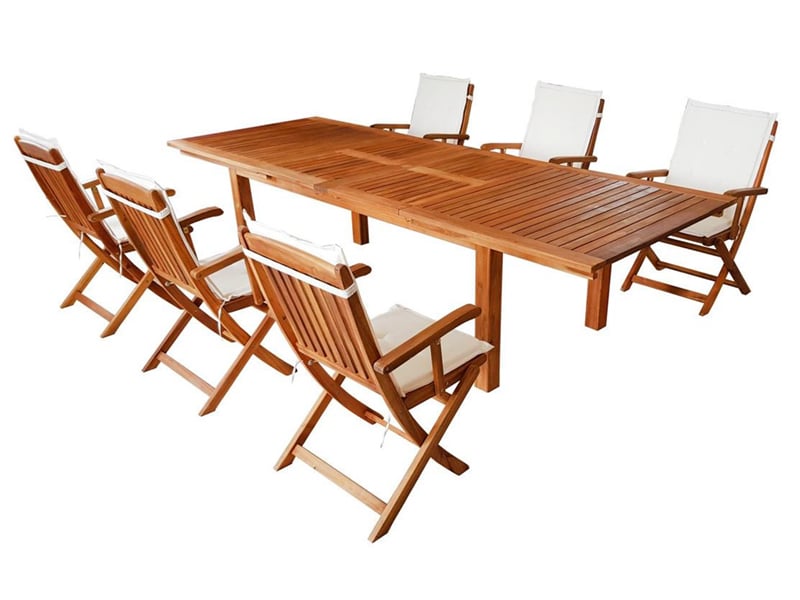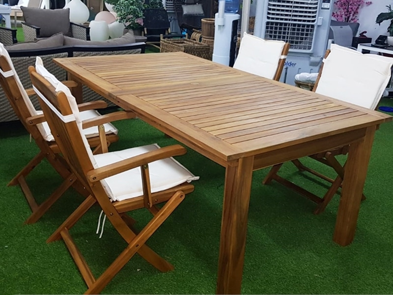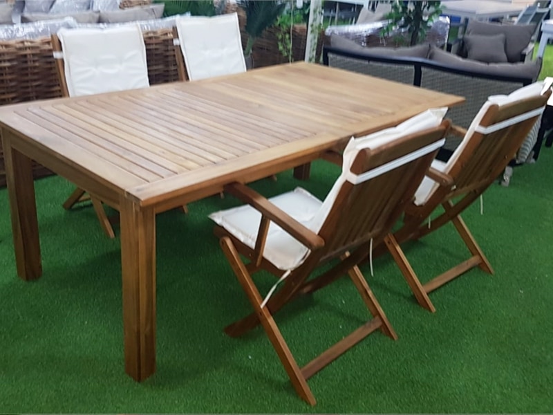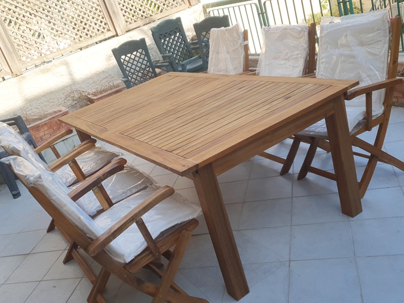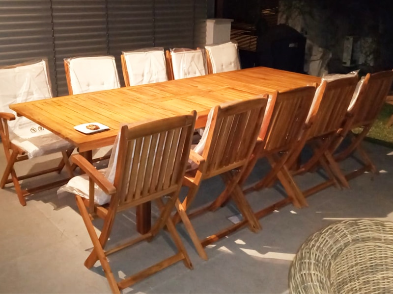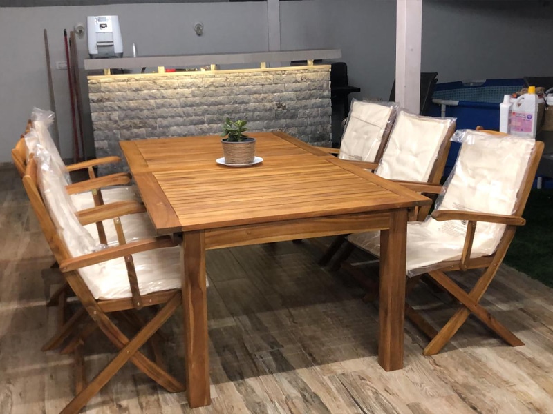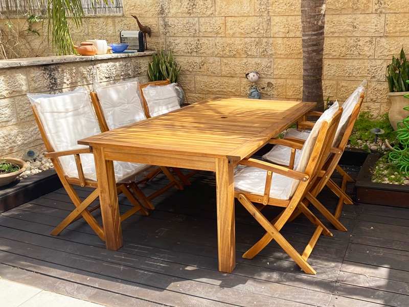 פינת אוכל איכותית ומרשימה מעץ מלא כולל 6 כסאות מתקפלים מעץ מלא דגם "ורונה"