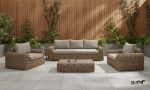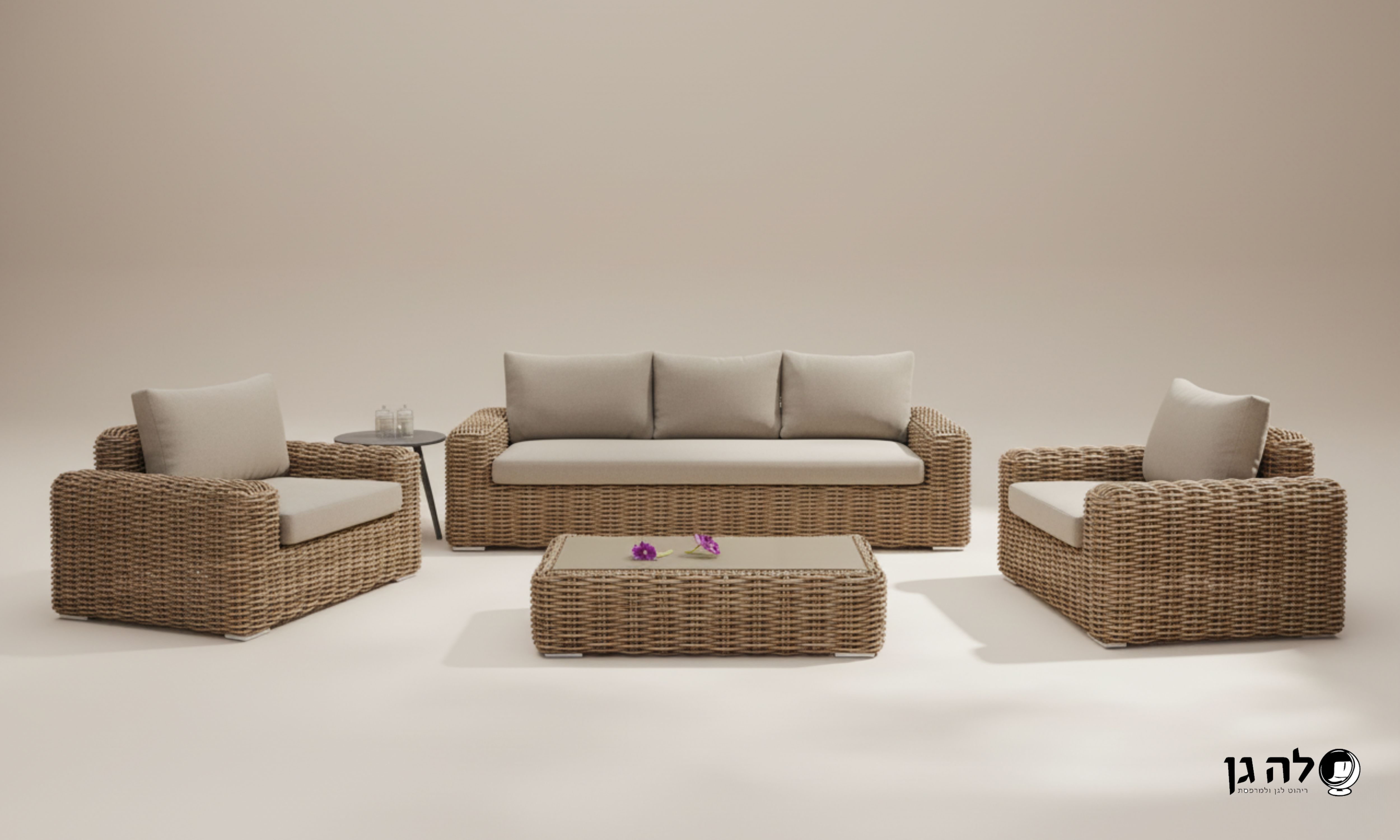 מערכת ישיבה מפנקת בעלת 5 מושבים מרווחים במיוחד, בעיצוב מודרני ויוקרת שלא רואים בכל מקום. המערכת מגיעה עם כריות נוחות המעניקות תמיכה מושלמת לגוף ומאפשרות שהייה מרובה במהלך היום. המערכת עשויה משלדת אלומיניום איכותי ועבה במיוחד בשילוב ראטן סינטטי איכותי במספר גוונים. החומרים האיכותיים ממנה עשויה המערכת מאפשרים לה להיות עמידה לתנאי חוץ קשים של שמש, גשם ורוח.