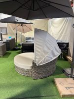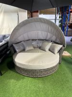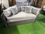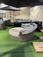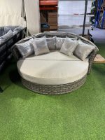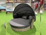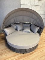 קונכיה מרשימה בעיצוב יוקרתי משלדת אלומיניום בחיפוי ראטן, מגיעה עם מזרון ושש כריות
