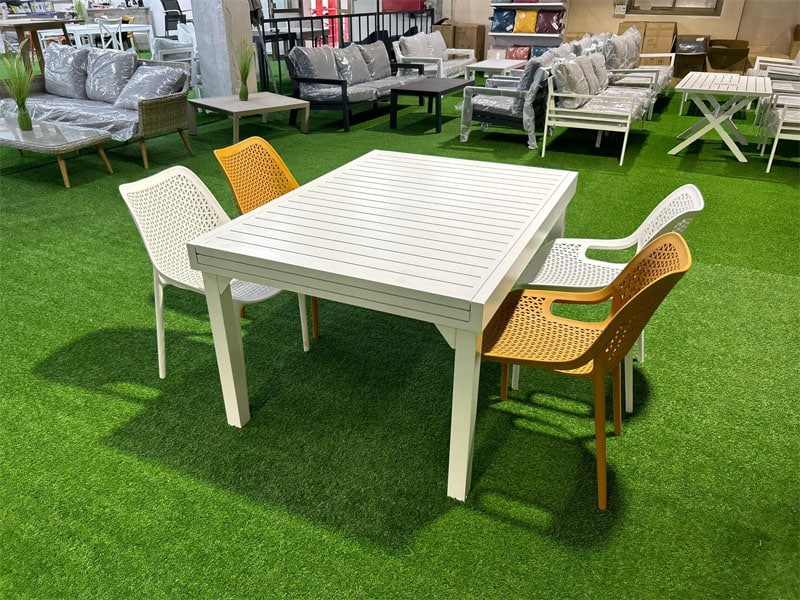 שולחן אוכל נפתח מאלומיניום בעיצוב קלאסי דגם "הוואי", מושלם לבית ולחצר