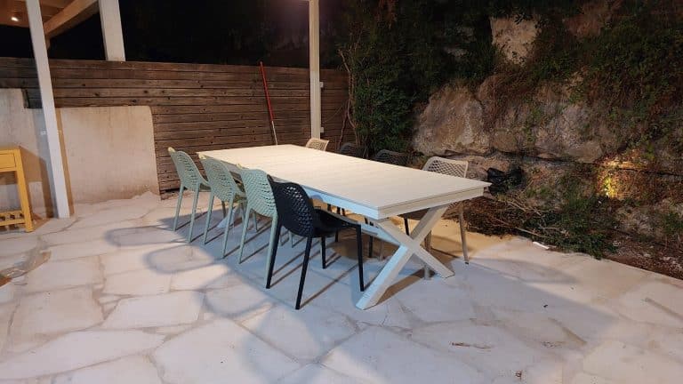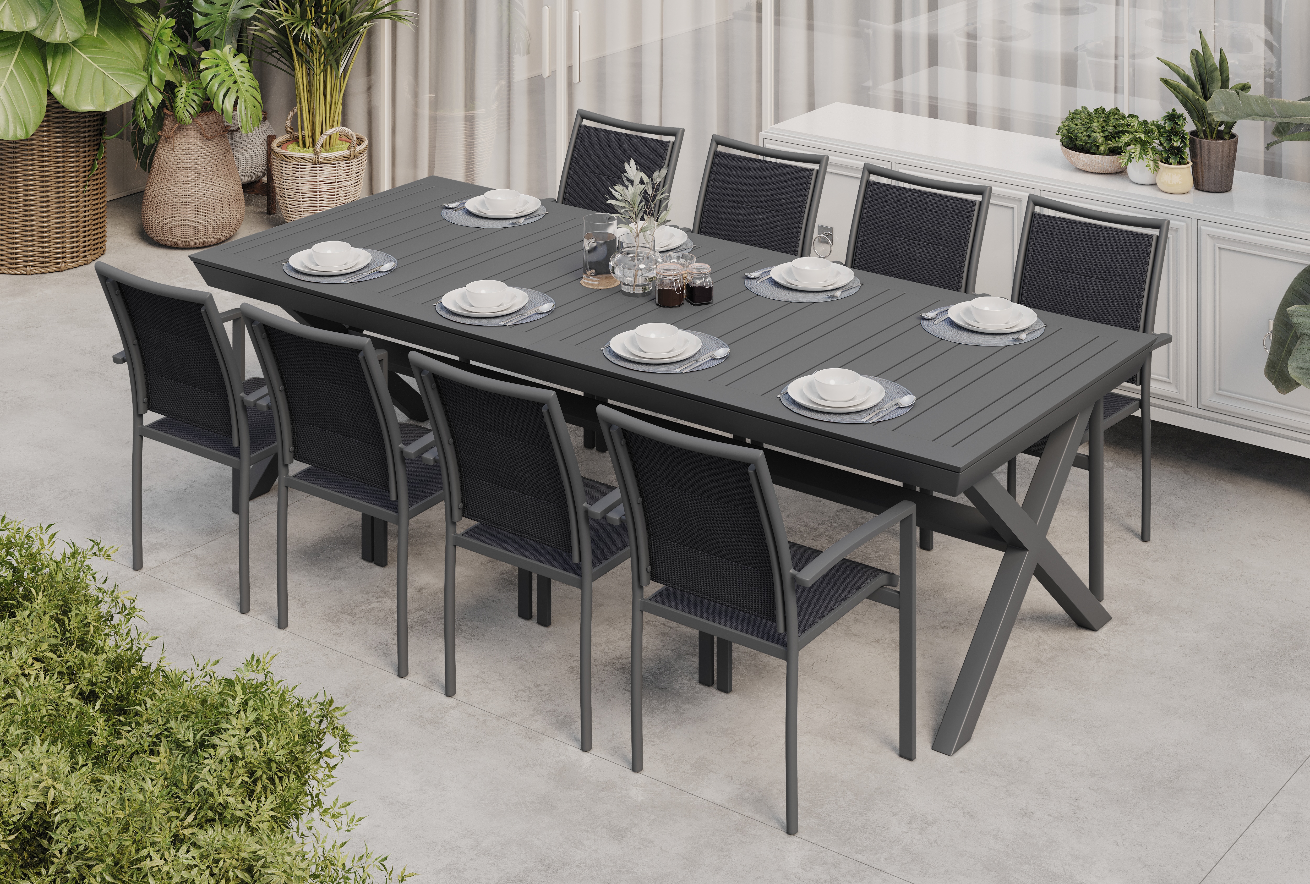 שולחן אוכל נפתח בעיצוב מודרני עשוי מאלומיניום, אידיאלי לחצר ולבית דגם "פוקט BIG"