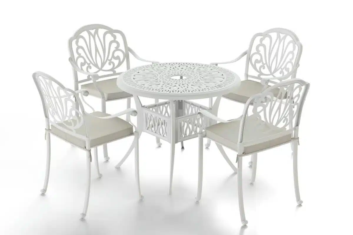 שולחן אוכל מאלומיניום כולל 6 כסאות פלסטיק איכותי ביותר בעיצוב מודרני, מושלם לאירוח