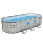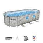בריכה עילית מלבנית עם שלדת פלדה, דפנות Tritech ומשאבת חול.