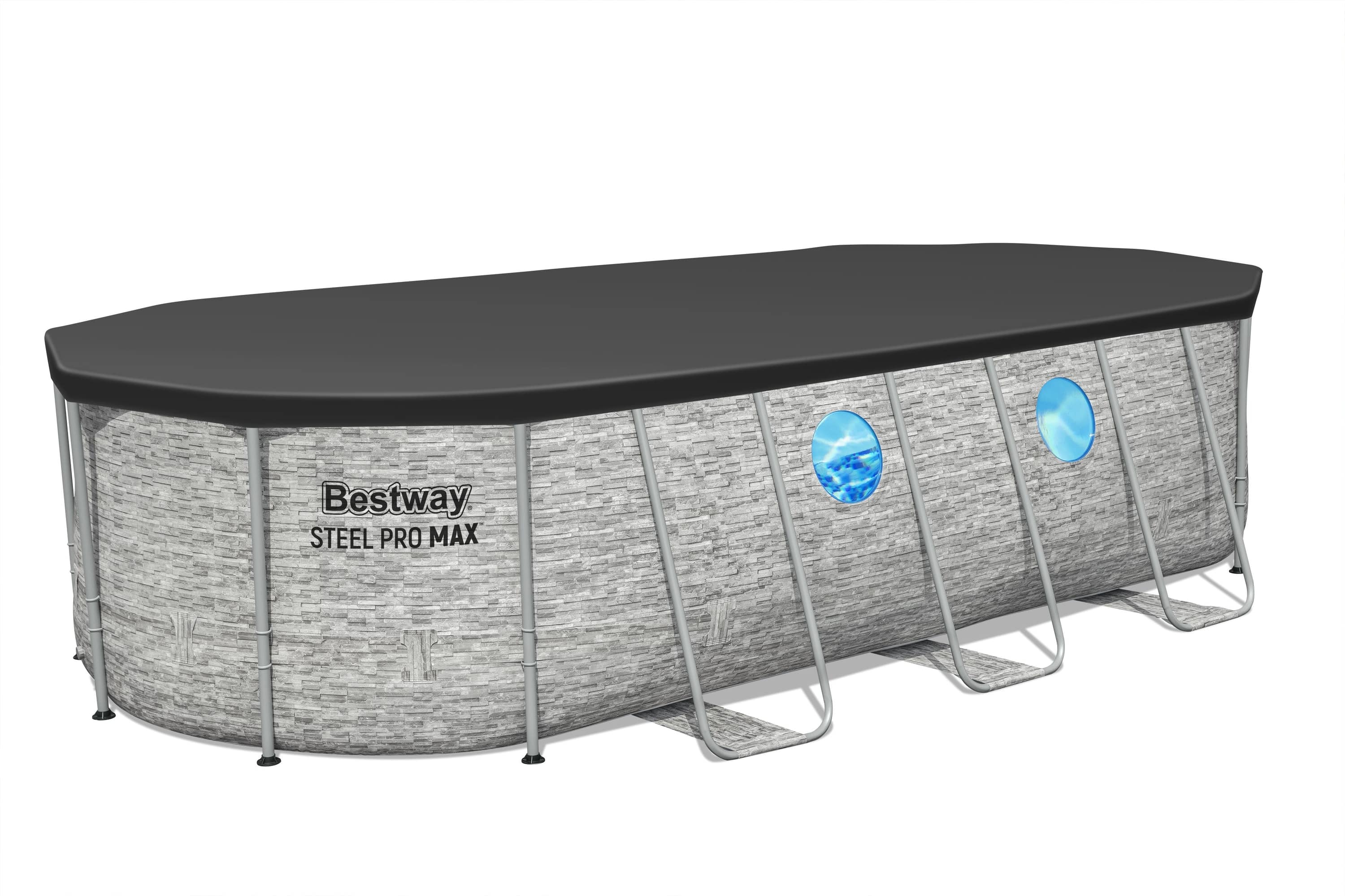 דפנות הבריכה עשויות חומר Tritech עמיד לניקוב ולקרינת UV, ומחוזקות באמצעות רצועת תמיכה 3 שכבות ליציבות מוגברת. שלדת הפלדה עמידה בפני קורוזיה ובעלת גימור מט, ומחברי ClickConnect מאפשרים הרכבה מהירה ובטוחה תוך מניעת מגע מתכת-במתכת. הבריכה בולטת במיוחד בזכות העיצוב: ליינר חיצוני בהדפס אבן טבעית וליינר פנימי בעיצוב Prismatic Stone, לצד 4 חלונות Splashview אטומים למים המוסיפים חוויית צפייה תת־מימית מהנה ואינטראקטיבית לילדים. בנוסף, שסתום ניקוז מובנה ומחברי Flow Control מאפשרים שליטה נוחה בזרימת המים וריקון קל באמצעות חיבור לצינור גינה (כולל מתאם).