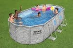 בריכה עילית מלבנית עם שלדת פלדה ודפנות Tritech עמידות.