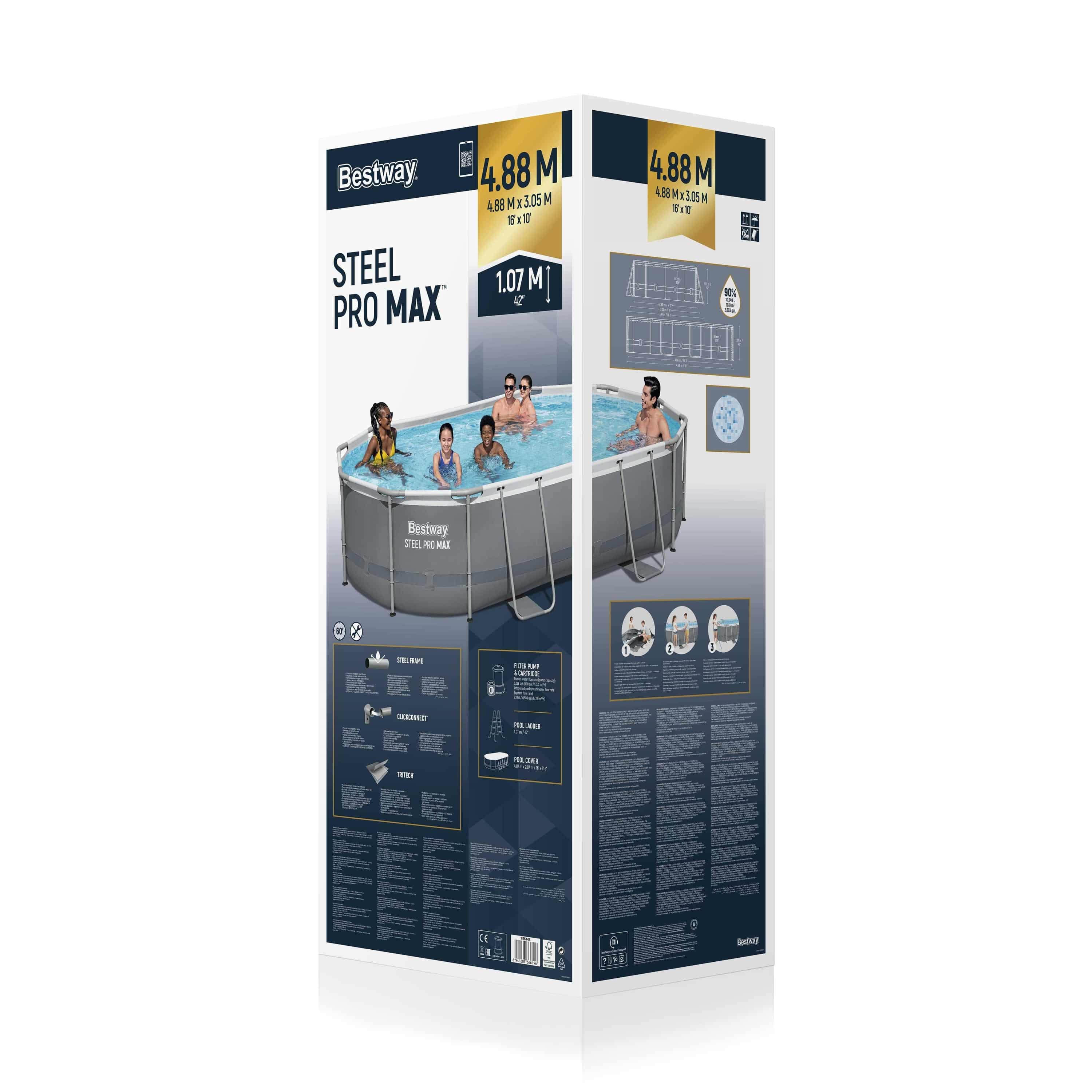 מהבחינה הטכנית, מידות הבריכה הן 404 × 201 × 100 ס״מ, עם קיבולת מים של 6,478 ליטר (90%). שלדת הפלדה עמידה בפני קורוזיה וכוללת מחברי ClickConnect™ להרכבה קלה ומהירה ולמניעת מגע מתכת-במתכת. זמן ההתקנה המשוער הוא כ־40 דקות בעזרת 2–3 אנשים. הבריכה מגיעה עם סולם בגובה 107 ס״מ, משאבת סינון ומחסנית פילטר, וכן שסתום ניקוז מובנה עם חיבור לצינור גינה (כולל מתאם). ספיקת המשאבה עומדת על 2,006 ליטר לשעה, וספיקת המערכת הכוללת על 1,817 ליטר לשעה.