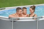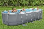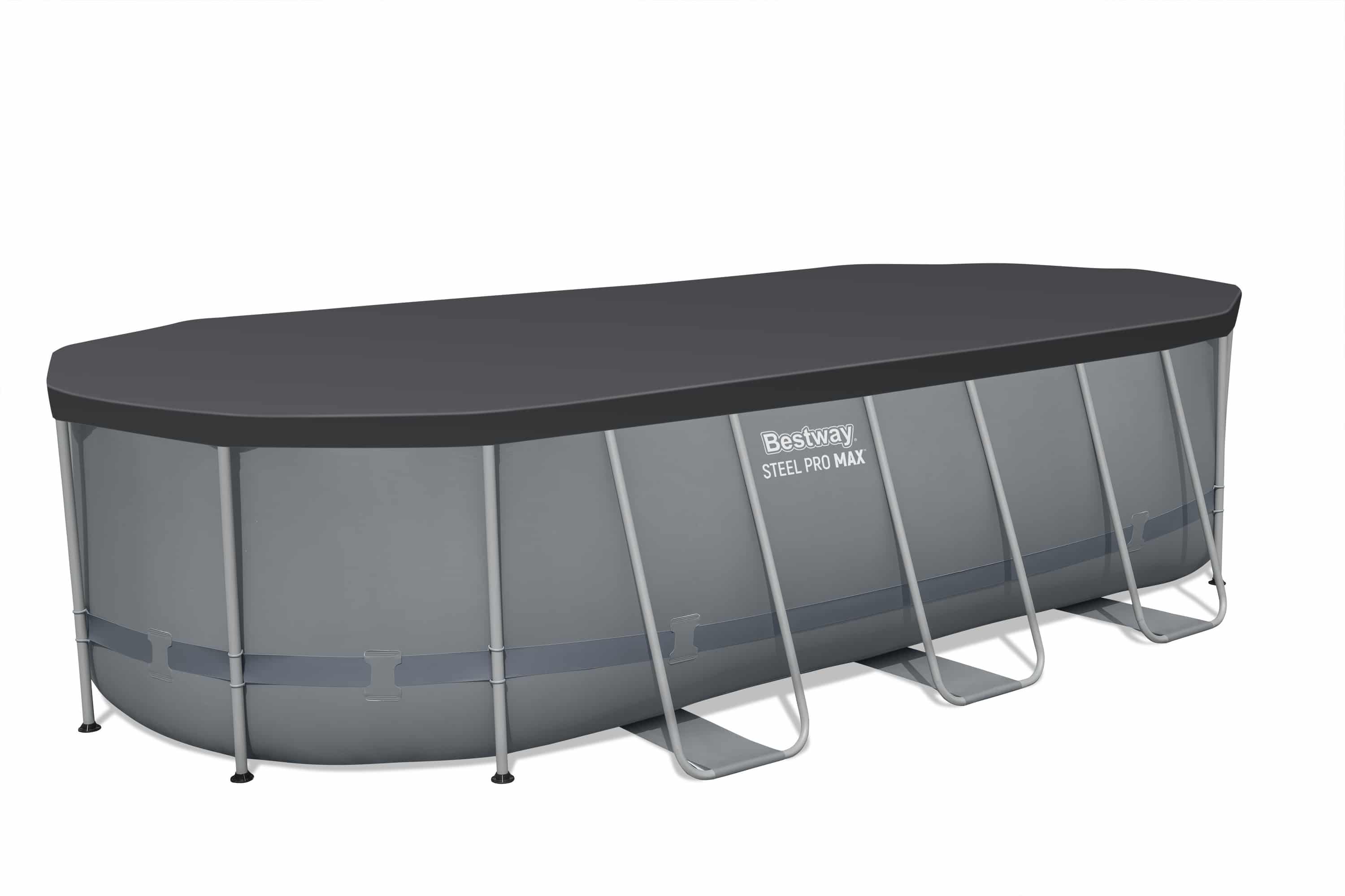 פתרון עונתי למי שמחפש בריכה אובלית גדולה עם מערכת סינון עוצמתית, סולם וכיסוי כלולים.