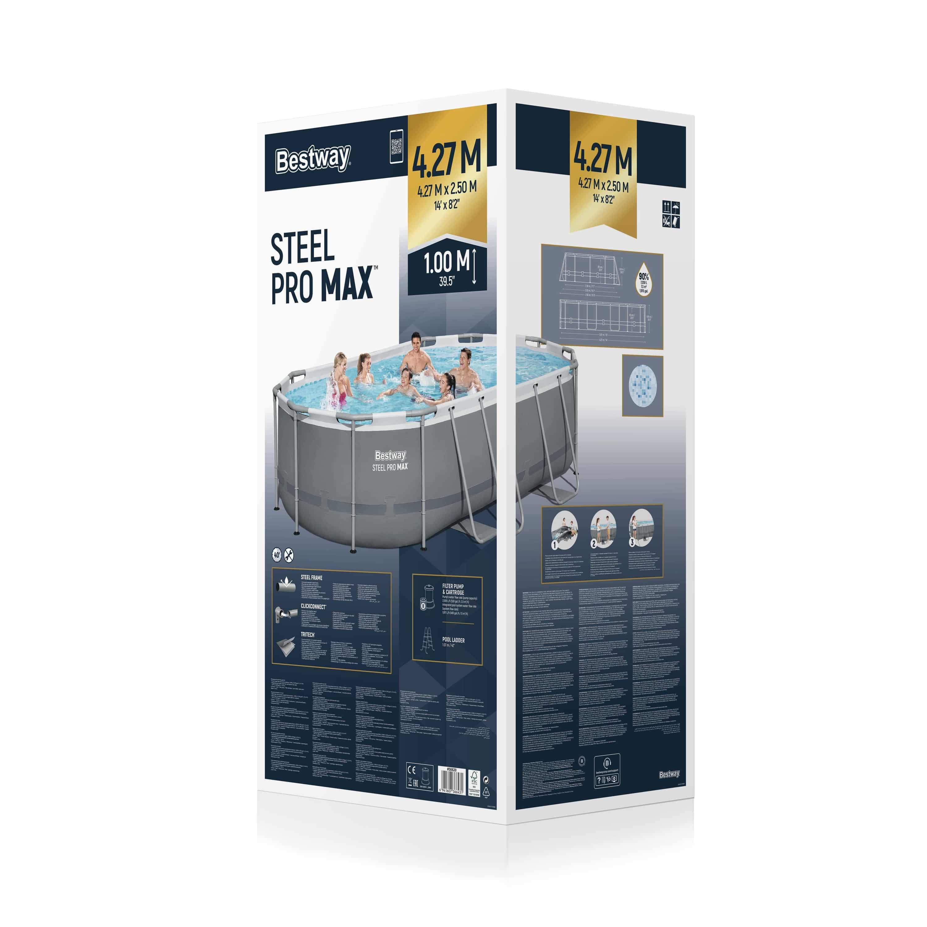 דפנות הבריכה עשויות חומר Tritech עמיד במיוחד לניקוב ולקרינת UV, ומספקות יציבות גבוהה לאורך זמן. בנוסף, הבריכה כוללת רצועת תמיכה 3 שכבות לחיזוק נוסף של הדפנות. שלדת הפלדה עמידה בפני קורוזיה ובעלת גימור מט, וההרכבה מתבצעת בקלות באמצעות מחברי ClickConnect המונעים מגע מתכת-במתכת ומאפשרים חיבור מהיר ובטוח. בנוסף, שסתום ניקוז מובנה מאפשר ריקון קל ומהיר באמצעות חיבור לצינור גינה (כולל מתאם).