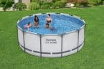דפנות הבריכה עשויות חומר Tritech איכותי ועמיד במיוחד, המעניק הגנה מפני ניקוב ועמידות גבוהה לקרינת UV. בנוסף, רצועת חיזוק 3 שכבות מספקת תמיכה נוספת לדפנות ומחזקת את יציבות הבריכה בשימוש יומיומי. שלדת הפלדה עמידה בפני קורוזיה ומגיעה בגימור מט, כאשר מחברי FrameLink נועדו למנוע מגע מתכת-במתכת ולשמור על עמידות גבוהה לאורך זמן. בנוסף, שסתום ניקוז מובנה מאפשר ריקון קל ונוח באמצעות חיבור לצינור גינה (כולל מתאם).
