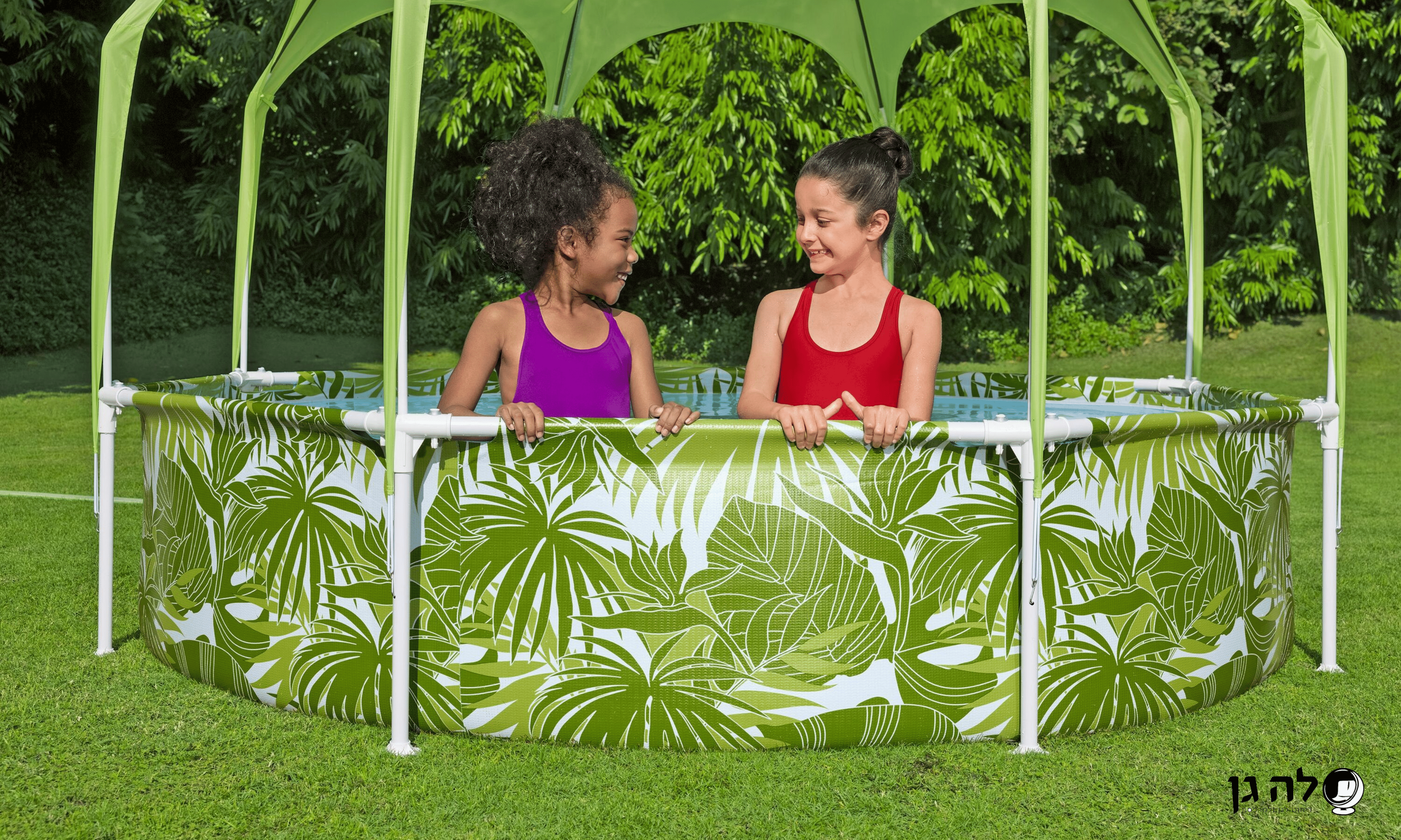 בריכת בריכת קורל העגולה מיועדת לילדים ולמשפחות המחפשות פתרון רחצה מהנה, בטיחותי ומוגן מהשמש לימי הקיץ החמים. הבריכה משלבת מבנה עמיד עם גגון הצללה מובנה, המאפשר משחק ורענון לאורך זמן גם בשעות השמש. דפנות הבריכה עשויות חומר Tritech® עמיד לניקוב ולקרינת UV, והעיצוב הטרופי בדפנות החיצוניות מוסיף מראה קיצי ושמח לחצר או לגינה.