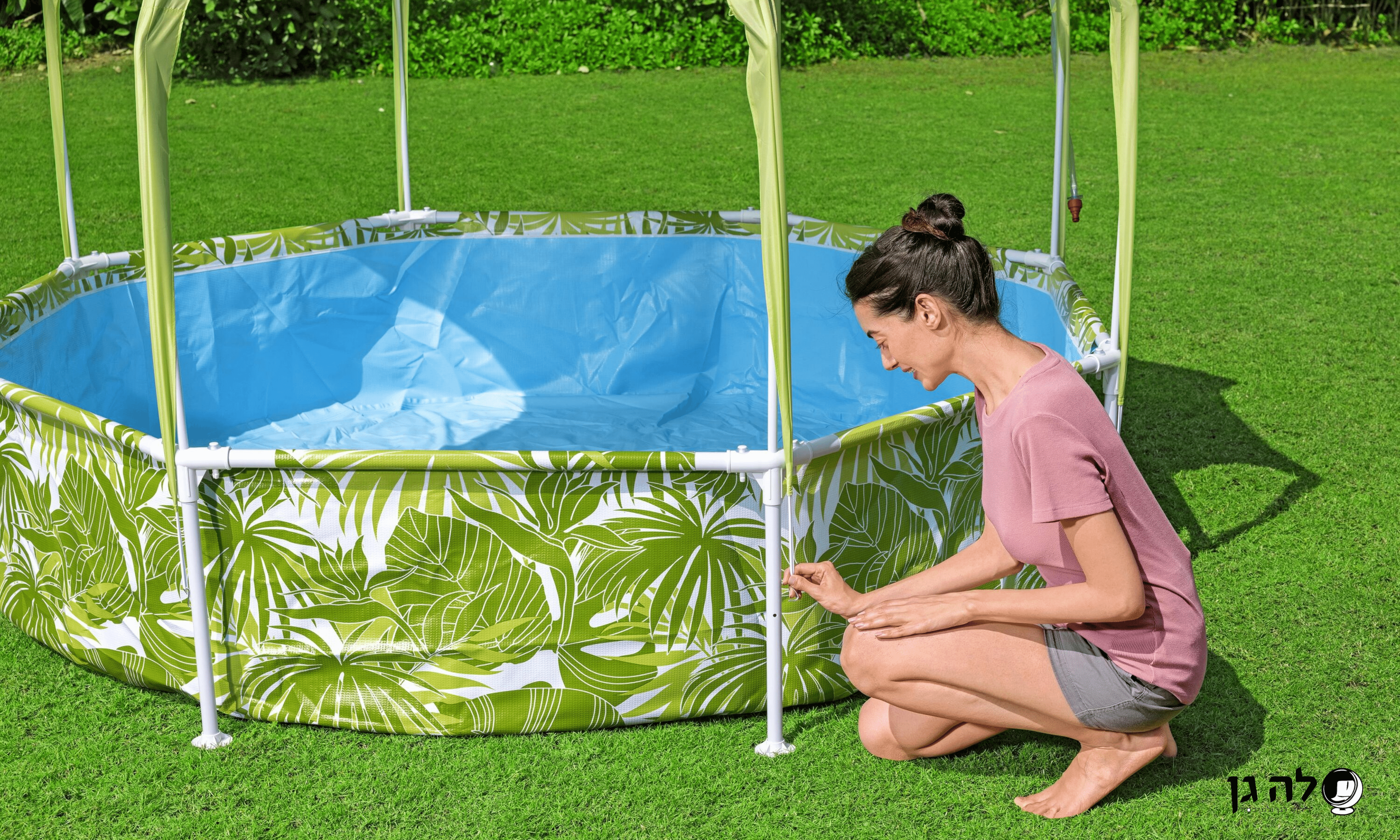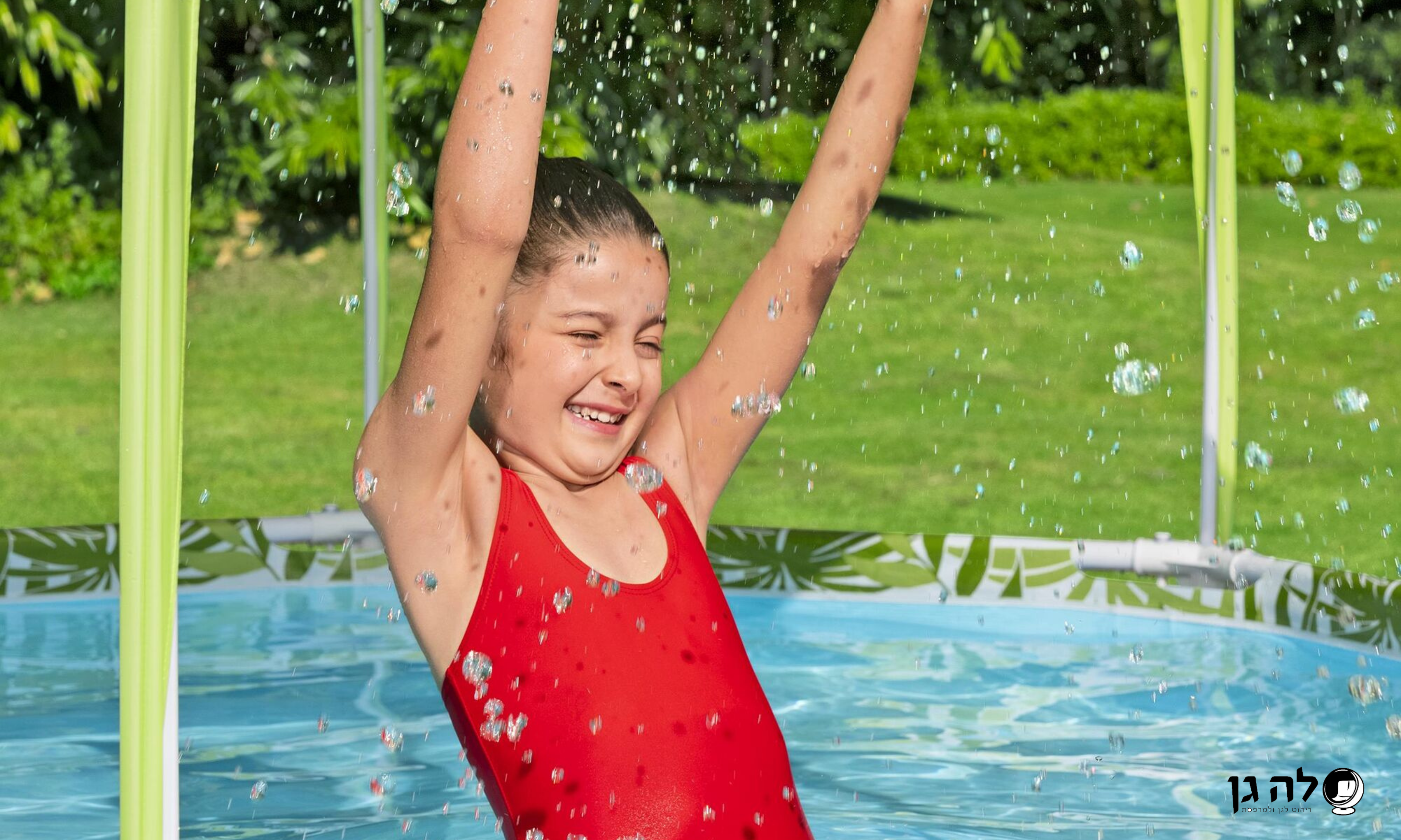 בריכת משחק מושלמת לילדים – שילוב של מים, צל וריענון לחוויית קיץ בטוחה ומהנה במיוחד.