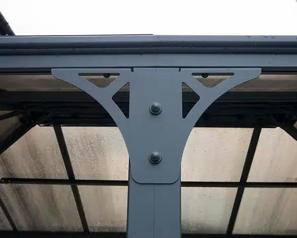 שלדת אלומיניום אל-חלד עמידה במיוחד, בשילוב קירוי פוליקרבונט בטכנולוגיית HEAT BLOCK, מעניקים הצללה מלאה תוך הפחתת הטמפרטורה באזור המוצל. בנוסף, מערכת קירוי ייחודית ללא ברגים מונעת חדירת גשם וטל, ומבטיחה בידוד מצוין ושימוש לאורך שנים ללא צורך בתחזוקה שוטפת.