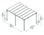 גזיבו בעיצוב מודרני עם גג שטוח ושלדת אלומיניום עמידה, כולל קירוי פוליקרבונט HEAT BLOCK להגנה מפני קרינת UV, פתח אוורור לשיפור זרימת האוויר, מערכת מרזבים לניקוז מים יעיל ואפשרות לתליית וילונות או רשתות – פתרון מושלם להצללה ונוחות בגינה לאורך כל עונות השנה.