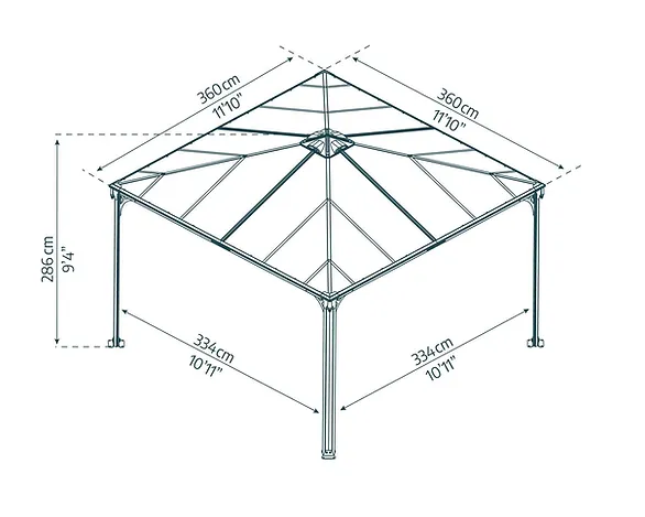 רוחב 360 ס"מ | אורך 360 ס"מ | גובה 295 ס"מ