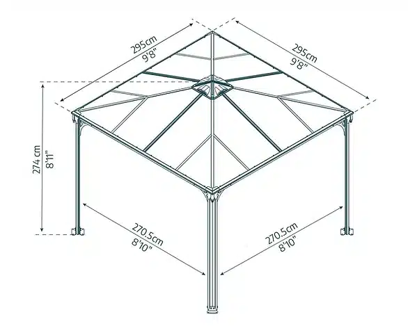 רוחב 295 ס"מ | עומק 295 ס"מ | גובה 276 ס"מ