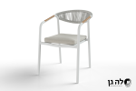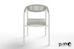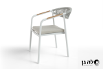כסא עם ידיות מעוצב בסגנון מודרני, מתאים למרפסת או לגינה.