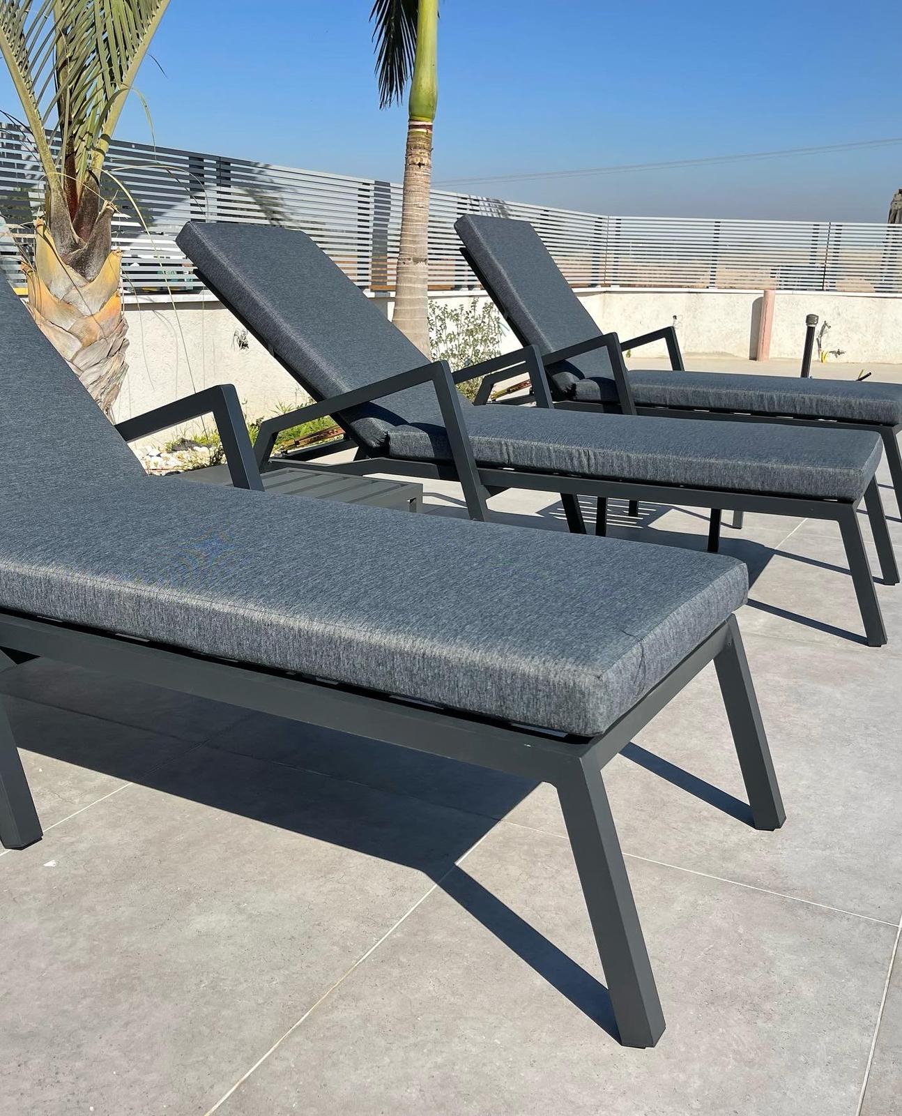מיטת שיזוף מאלומיניום עמיד מפני שמש ומים, בעלת מראה יוקרתי מאוד.
