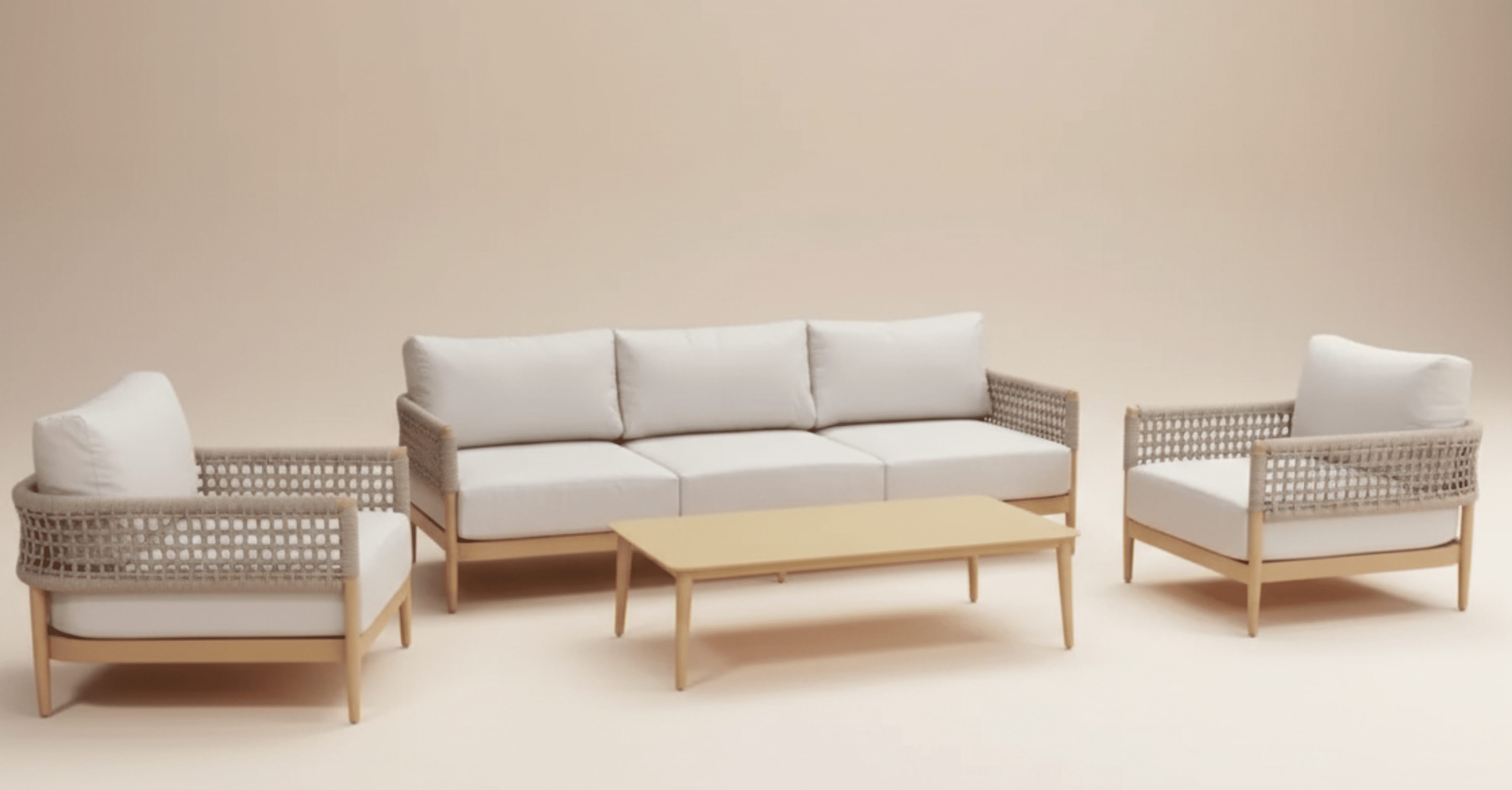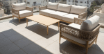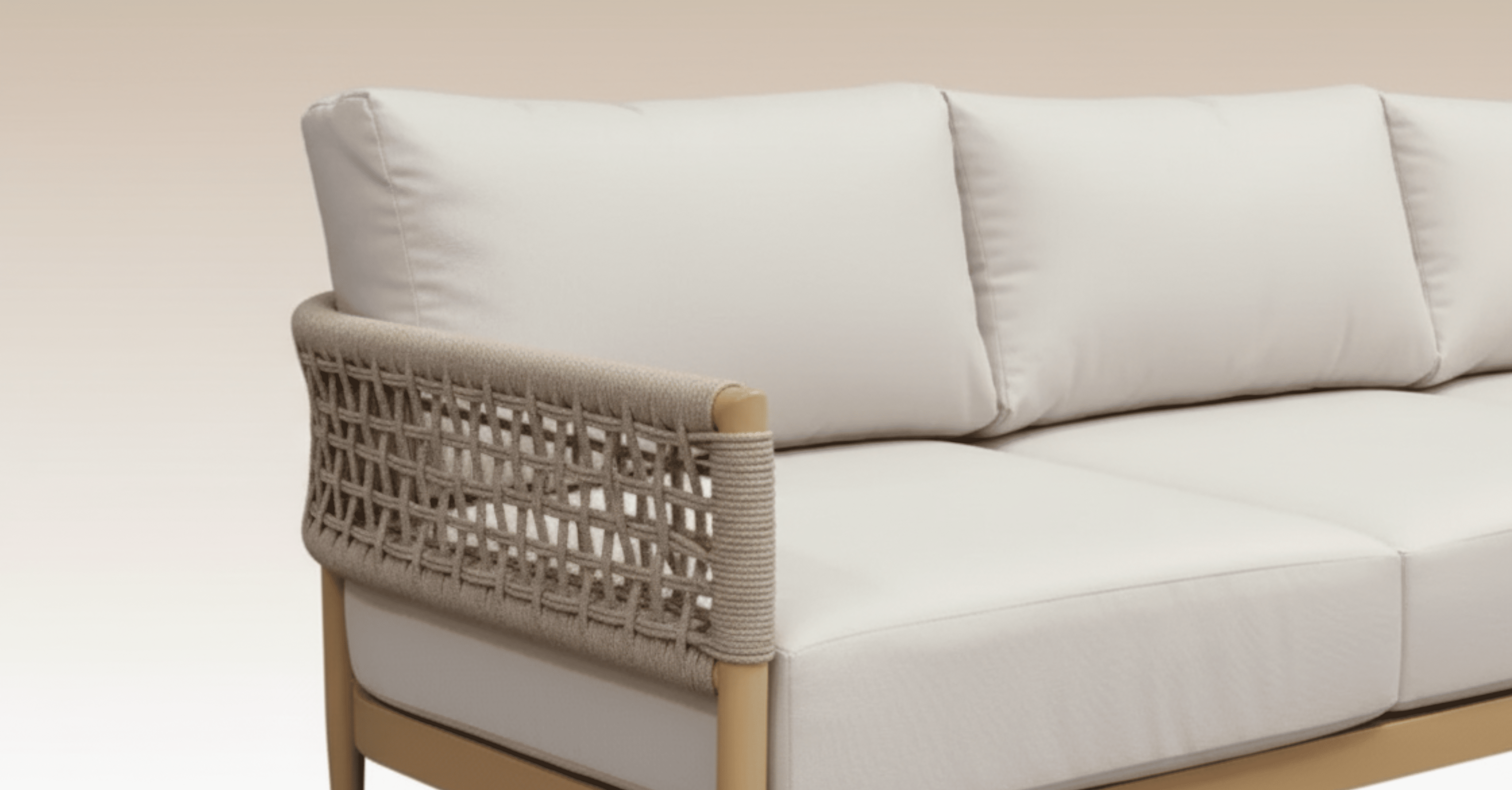 פינת ישיבה איכותית ומפנקת, בעלת חמישה מושבים, עשויה אלומיניום בשילוב חבלים