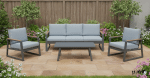 מערכת ישיבה מאלומיניום, כוללת ספה דו-מושבית, 2 כורסאות ושולחן קפה, עם כריות עבות בעיצוב מודרני