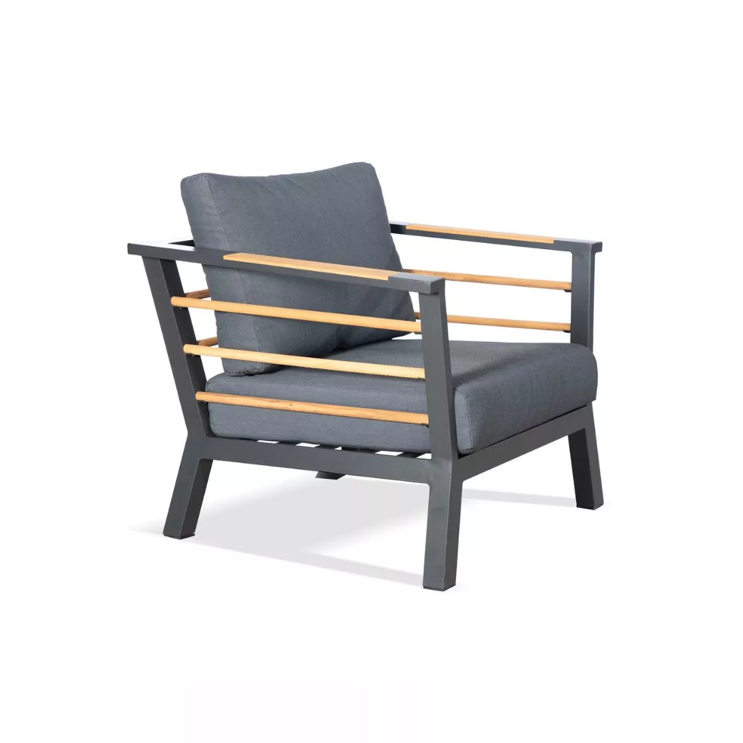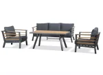 מערכת ישיבה בעלת חמישה מושבים מדגם מונטה קרלו. בעלת עיצוב ייחודי המשלב אלומיניום עם עץ.