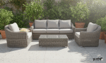 מערכת ישיבה יוקרתית מאוד, בעלת חמישה מושבים עם מראה מרשים ומפואר. המערכת עשוי מבסיס אלומיניום בשילוב ראטן עגול מלא 10 מ"מ, בעל עובי ועמידות מצויינת לאורך טווח.