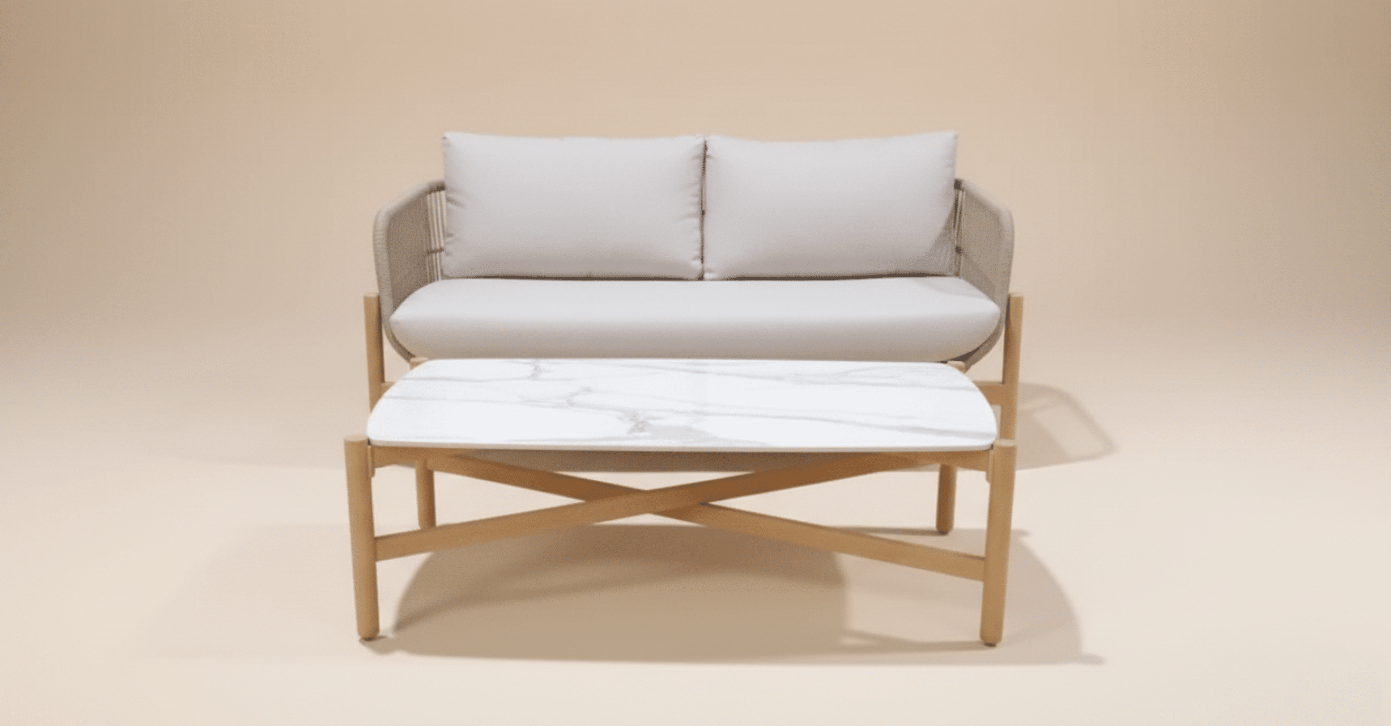 מערכת ישיבה איכותית בעלת מראה אלגנטי אשר מתאימה למרפסת או לגינה. שלדת המערכת עשויה מאלומיניום עבה ועמיד בשילוב חבלים המעניקים מראה ייחודי.