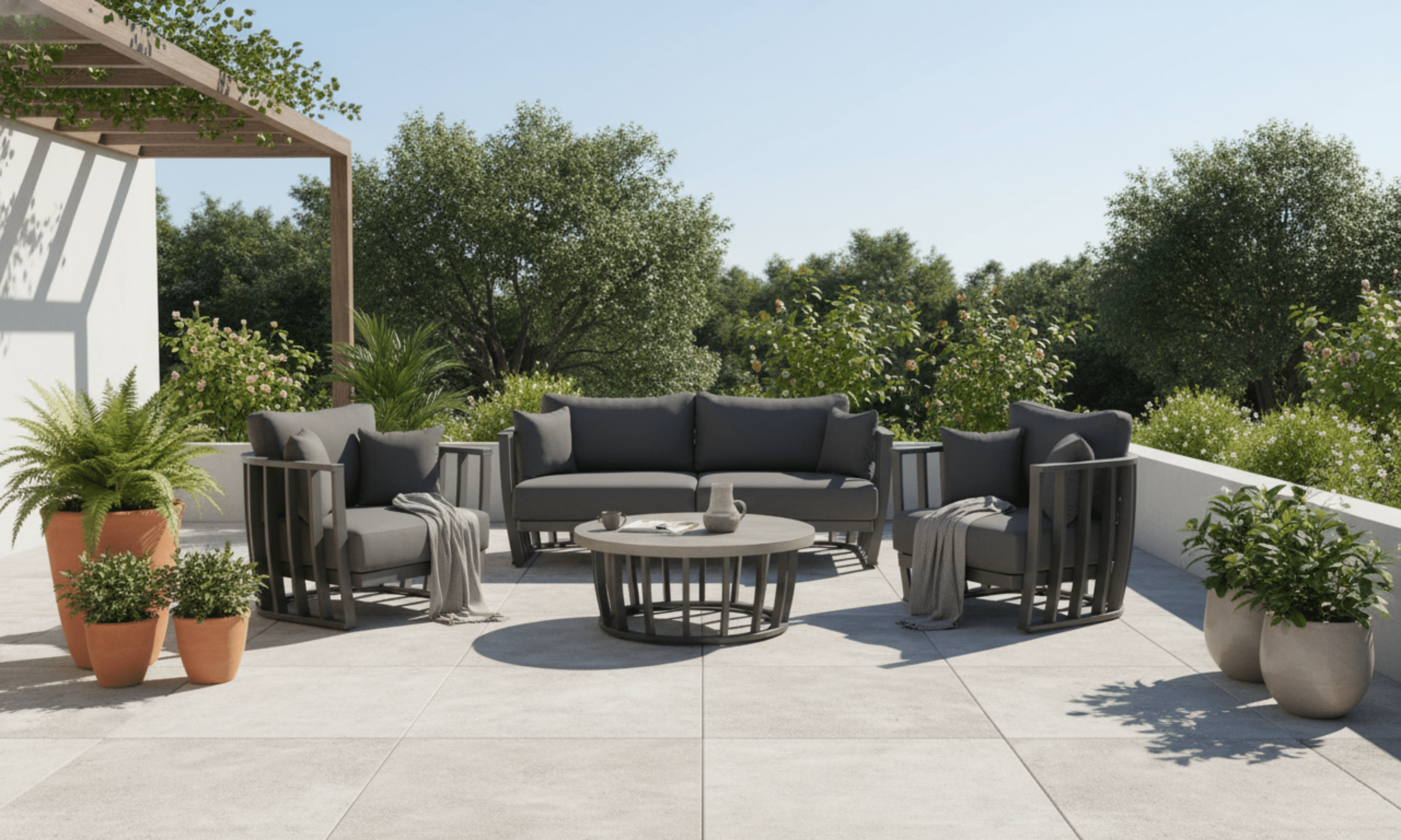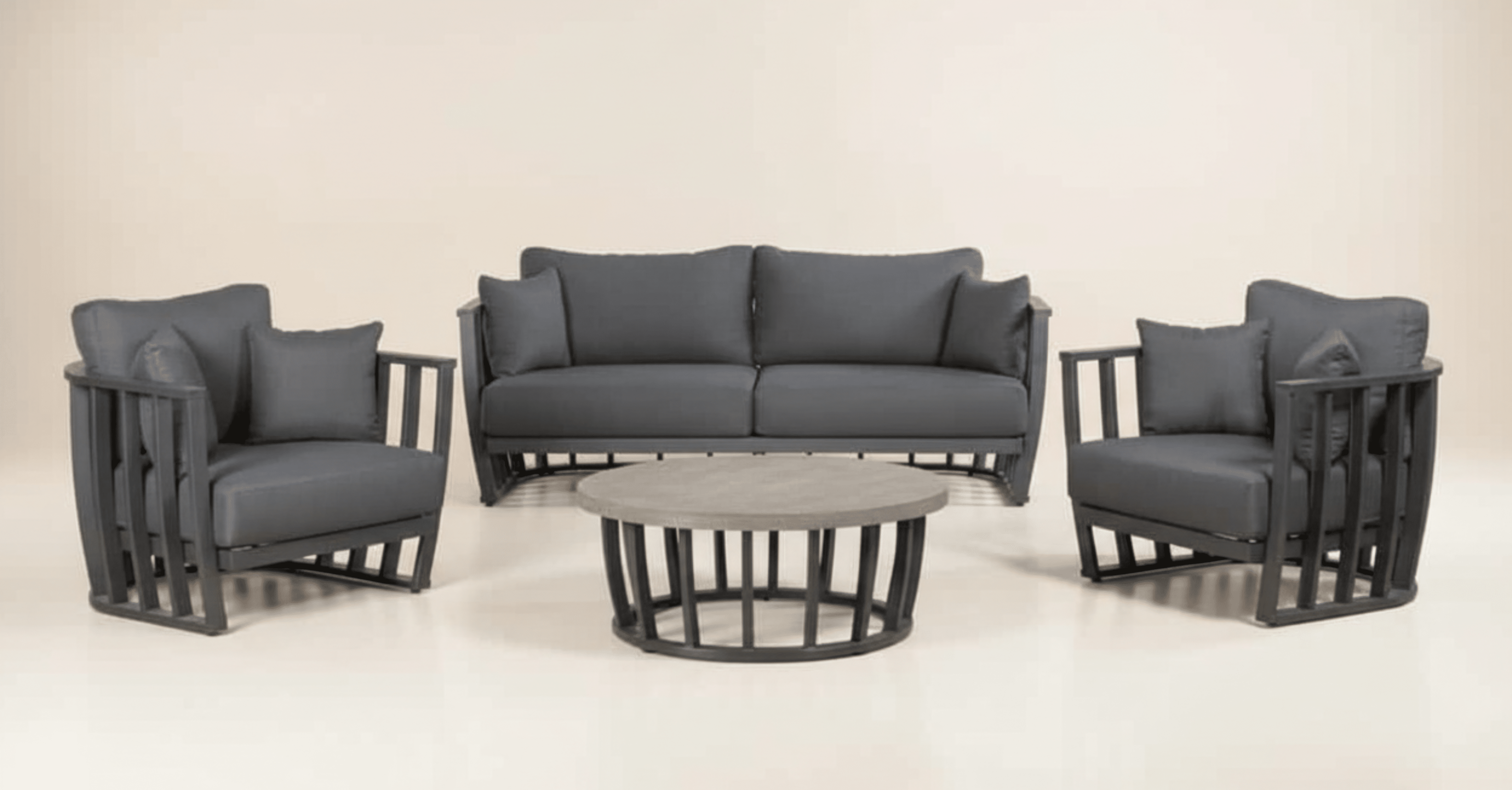 מערכת ישיבה יוקרתית ומפנקת מדגם "פורטו" בעיצוב מודרני ואלגנטי, המתאימה לגינה ולמרפסת.