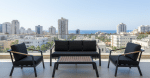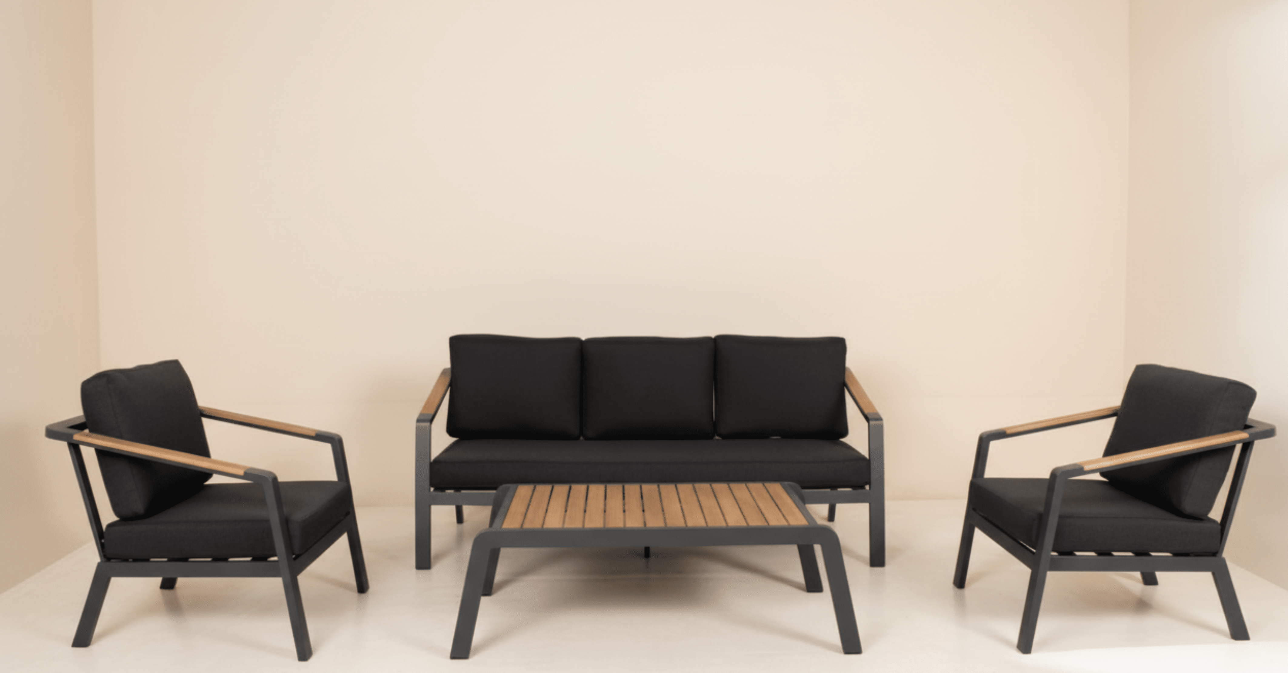 מערכת ישיבה מפנקת בעלת 5 מושבים בעלת מראה קלאסי ומרשים, המערכת מתאימה ביותר גם למרפסת וגם לגינה. עשויה משלדת אלומיניום עבה במיוחד בחיפוי חומר דמוי עץ (פוליווד) בידיות ובפלטת השולחן.