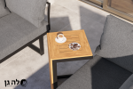 מערכת ישיבה מאלומיניום ודמוי עץ בעיצוב מודרני ואלגנטי, בעלת ארבעה מושבים ושולחן קפה.