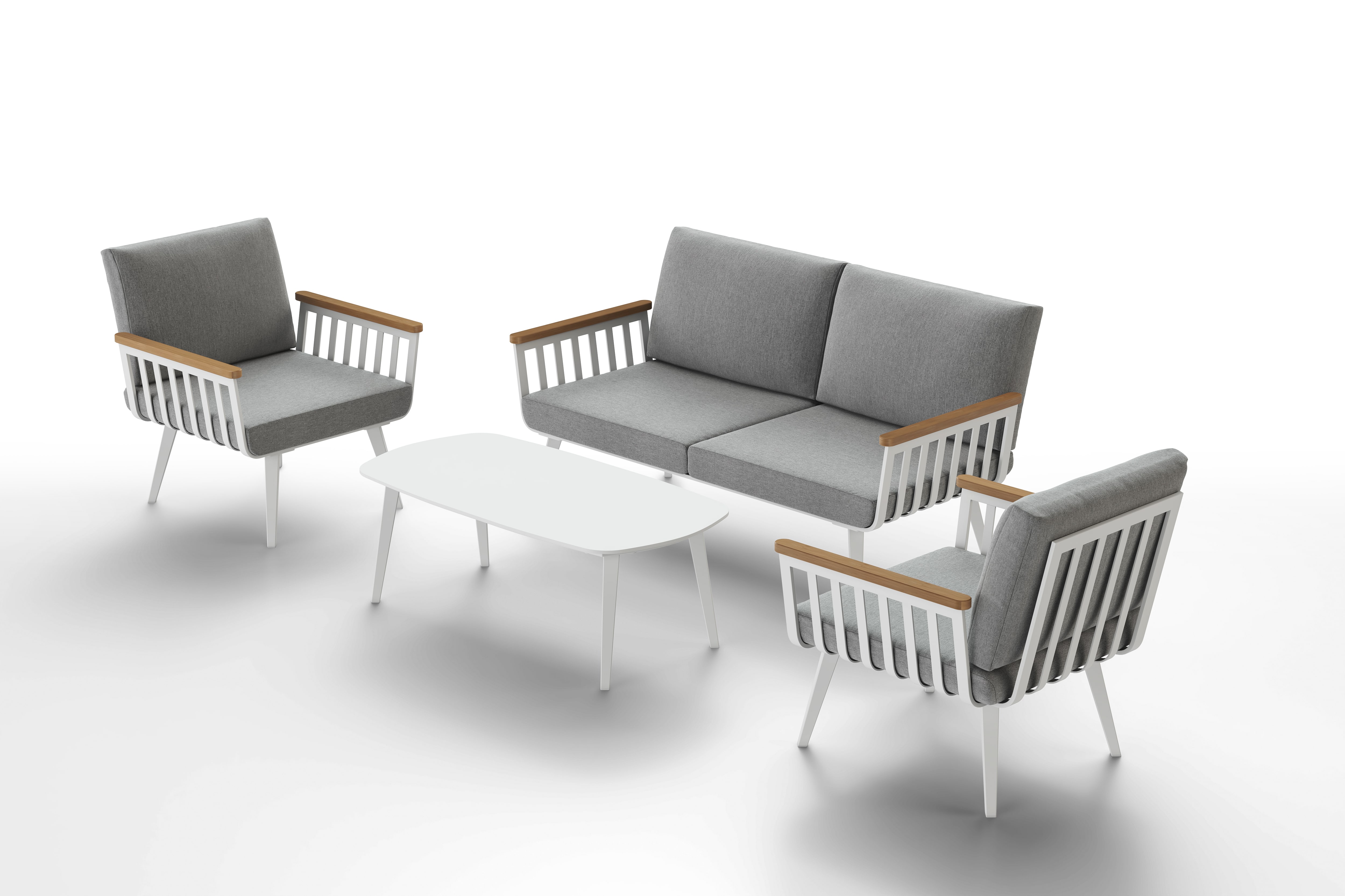 מסגרת אלומיניום בצבע לבן בשילוב ריפוד וכריות בצבע אפור בהיר / מסגרת אלומיניום בצבע אפור כהה עם ריפוד וכריות בצבע אפור כהה