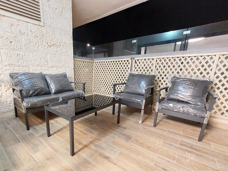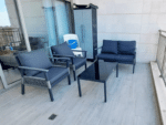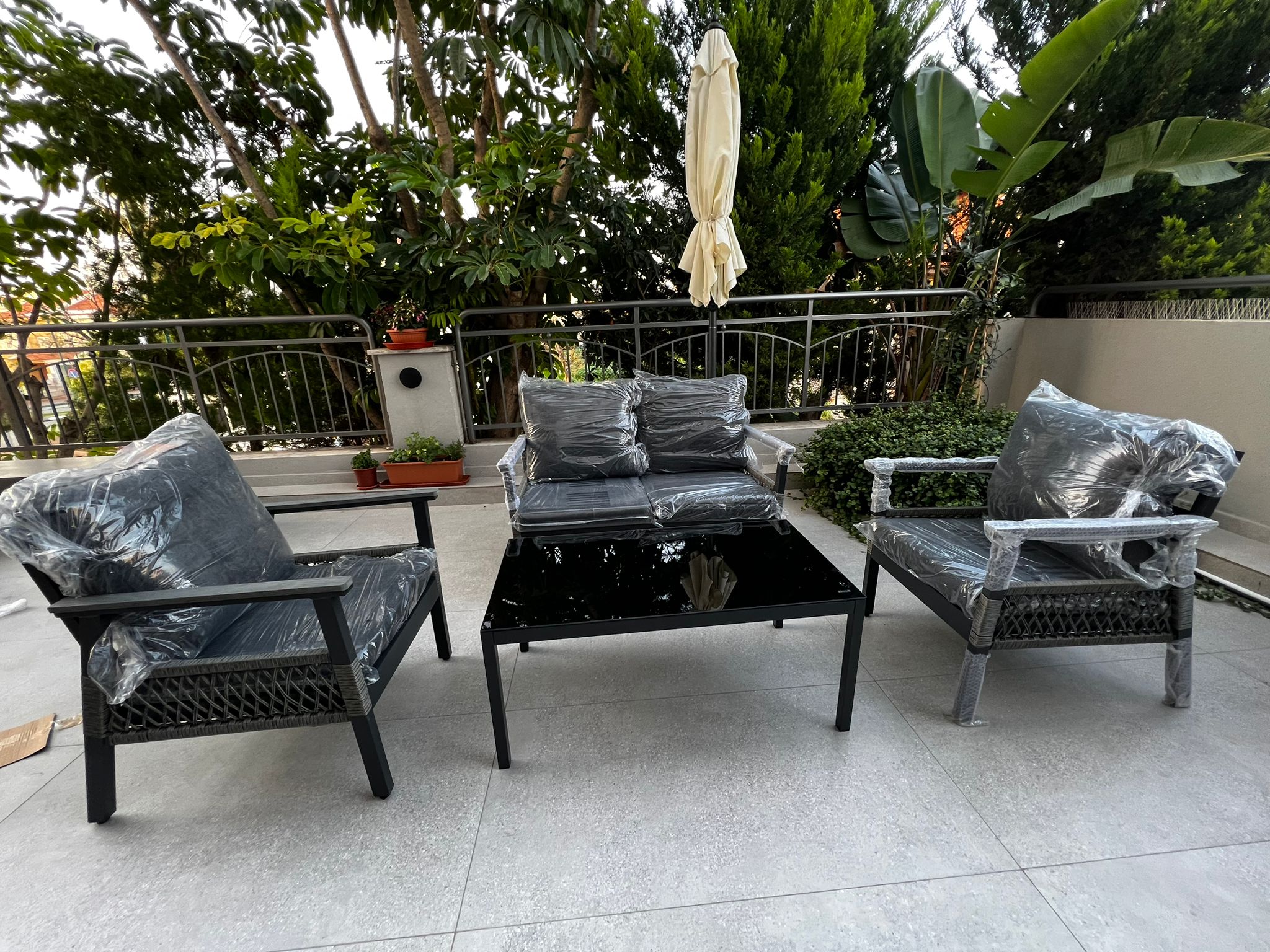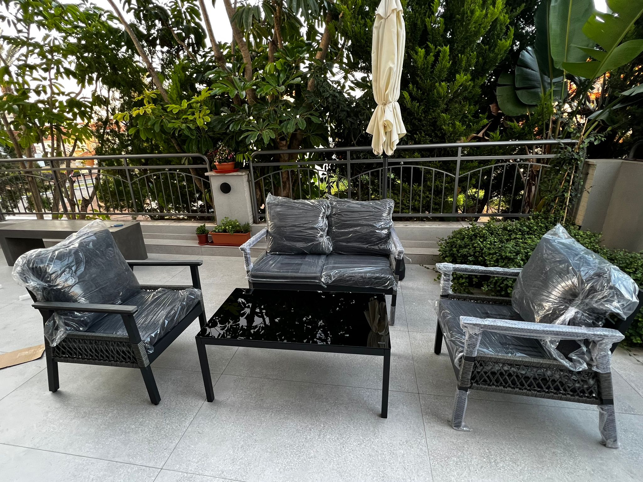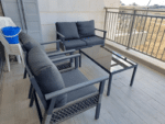 מערכת ישיבה מפנקת ואיכותית מאלומיניום בשילוב חבלי ראטן ושולחן עם פלטת זכוכית