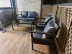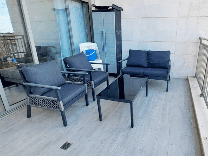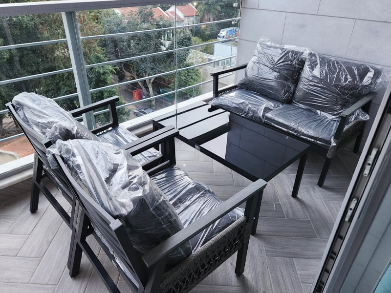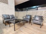 מסגרת אלומיניום בצבע אפור כהה בשילוב ריפוד וכריות בצבע אפור כהה