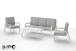 מערכת ישיבה מובחרת, איכותית ומפנקת מאוד עם עיצוב מדהים ויוקרתי במיוחד. המערכת עשויה משלדת אלומיניום חזקה ומאסיבית. השלדה צבועה בתנור בשיטה מתקדמת במיוחד בשם Powder Coating בשלוש שכבות (כולל שכבת ANTISCRACH למניעת שריטות). המערכת עמידה מאוד לתנאי חוץ לאורך שנים בכל תנאי מזג האוויר וימות השנה!
