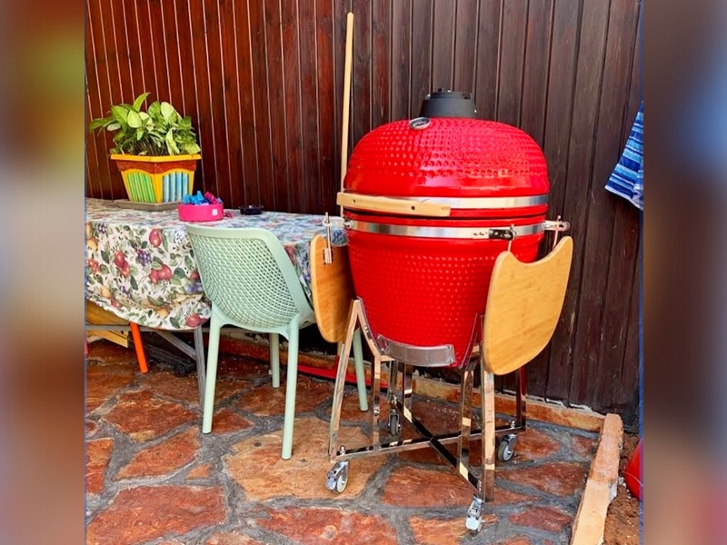 מעשנת פחם CAMADO איכותית ביותר  -23.5עשויה קרמיקה. קוטר עישון ענק – 51.5 ס"מ. כולל מלקחיים לרשת , כלי איסוף לאפר. מגיע עם מתקן ברזל גלגלים ומדפי שירות. משקל 85 ק"ג. טמפרטורה – 400 מעלות.