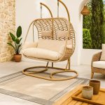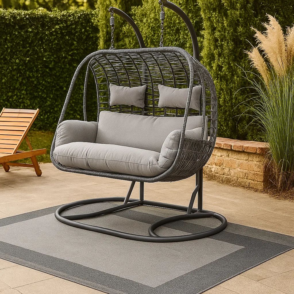 ערסל זוגי ראטן נוח עם כרית ומתקן תליה.