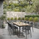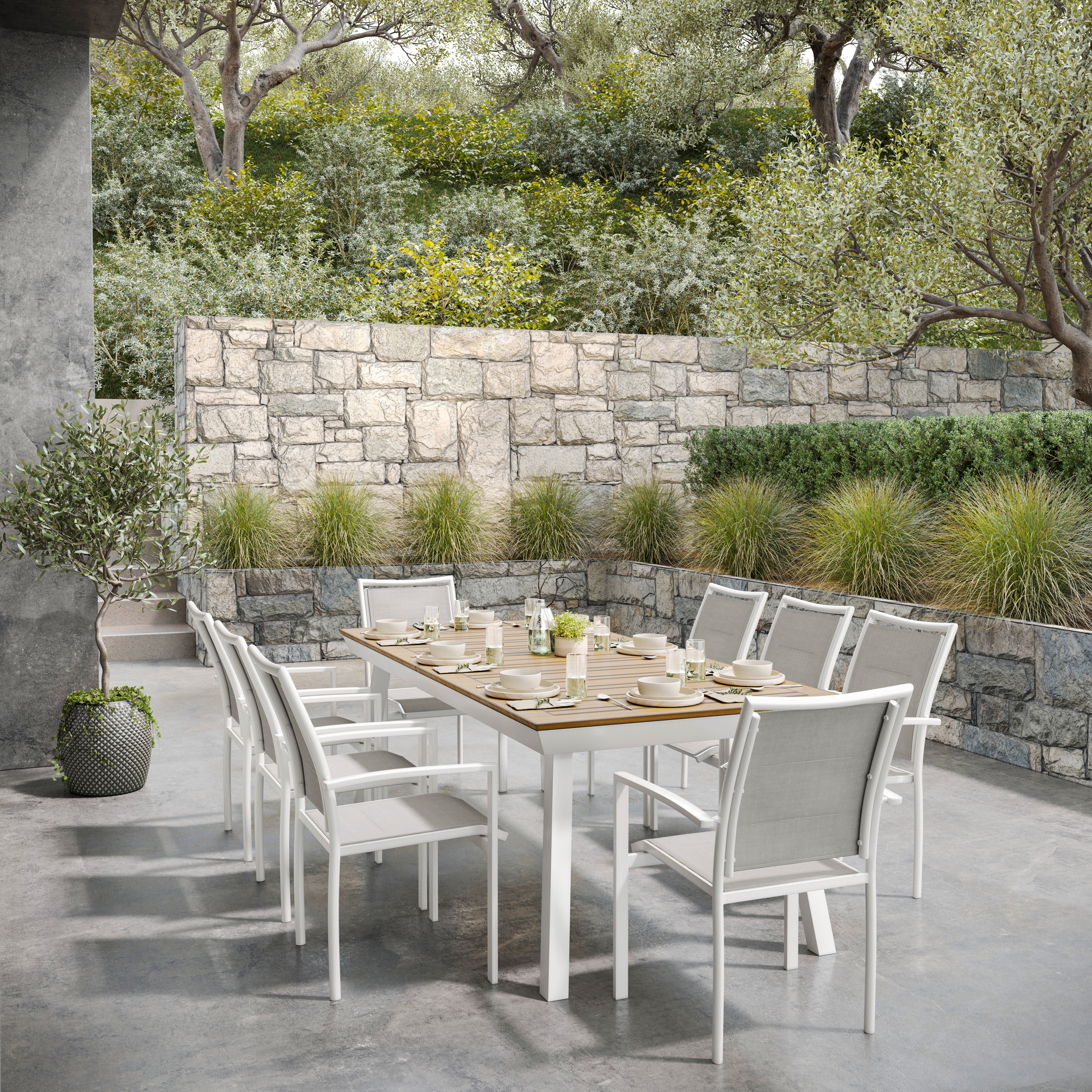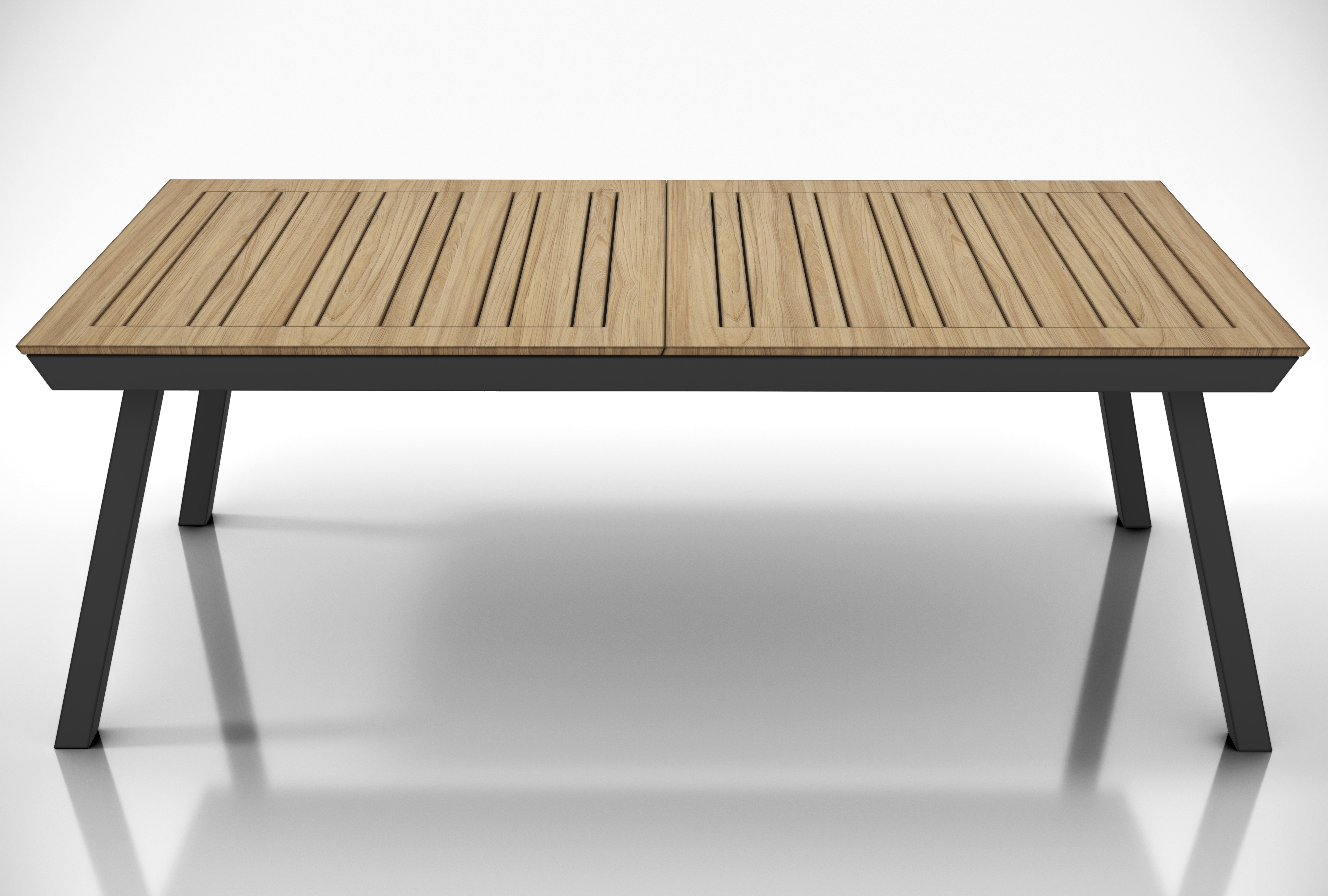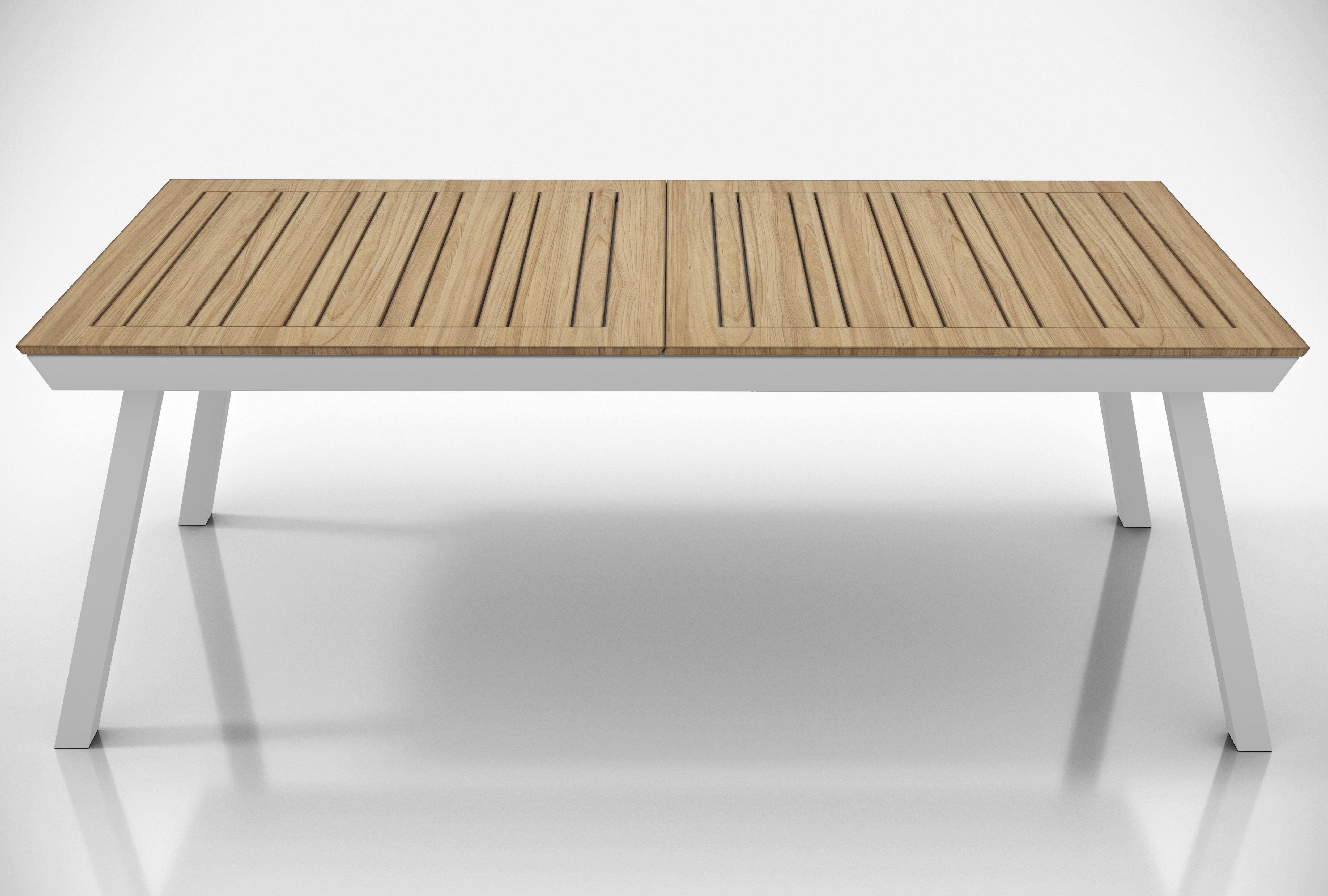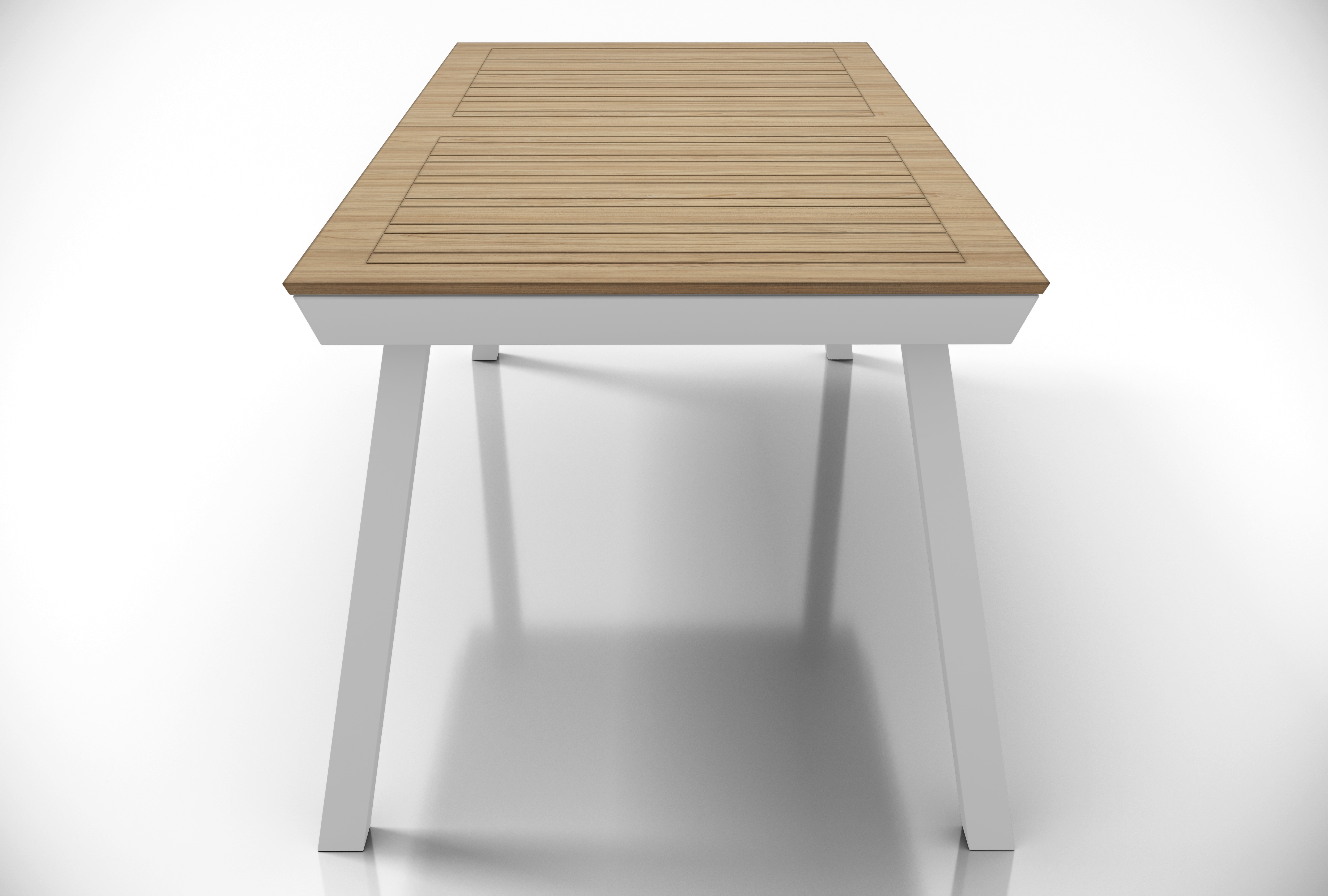 שולחן בעל מראה יוקרתי ומרשים במיוחד המעוצב ברמה אדריכלית בפרופילים חדים ומודרנים. השולחן עשוי מאלומיניום איכותי ועבה במיוחד. האלומיניום צבוע בתנור בשיטה מתקדמת במיוחד בשם Powder Coating בשלוש שכבות (כולל שכבת ANTISCRACH למניעת שריטות).
