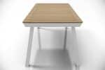 משטח השולחן דמוי עץ, רגלי השולחן פרוסות כלפי חוץ כך שהיציבות שלו משתפרת משמעותית לעומת שולחנות עם רגליים ישרות.