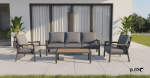 מערכת ישיבה בעלת חמישה מושבים, עשויה מאלומיניום בעיצוב מודרני ומיוחד, בשילוב חומר דמוי עץ.