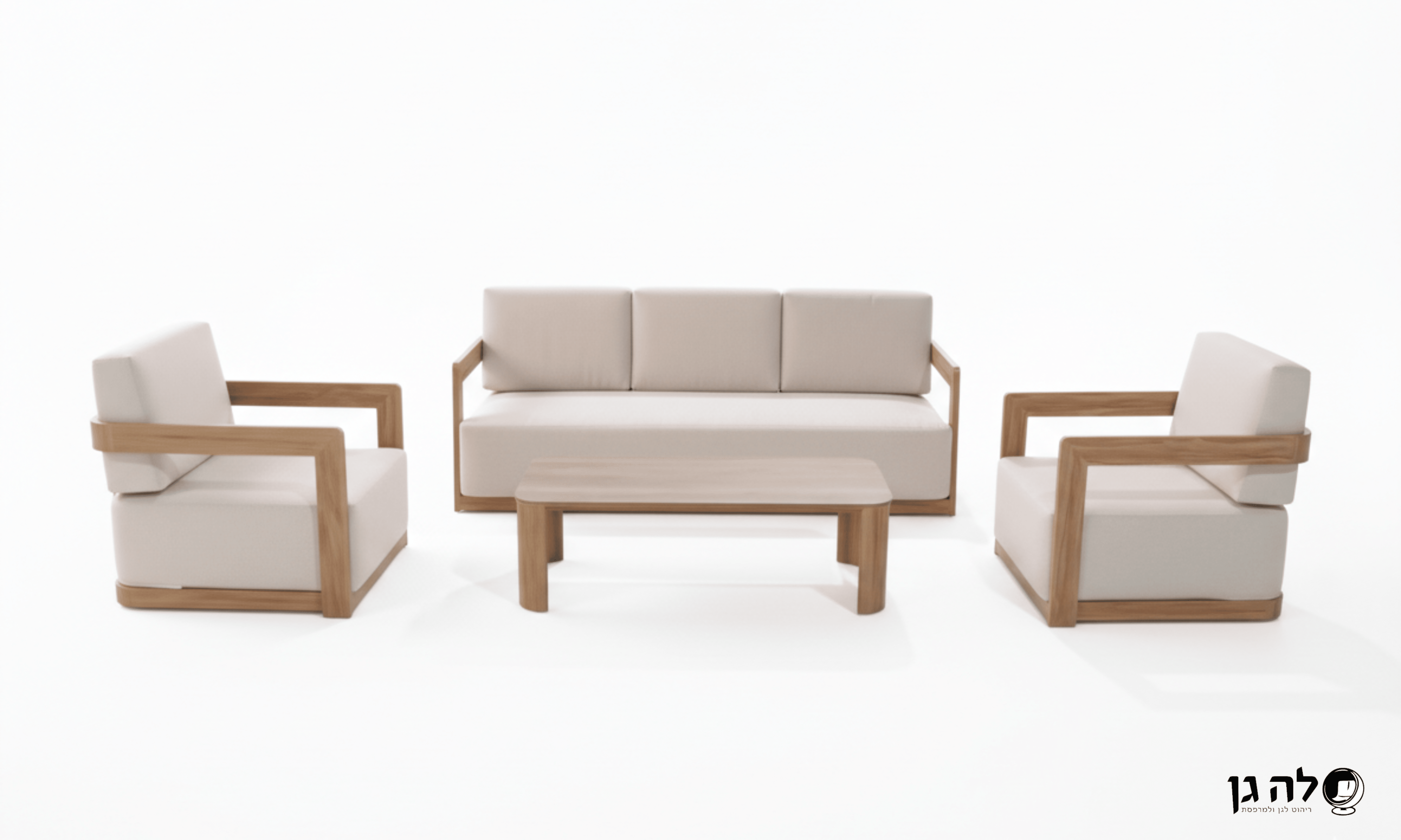 מערכת ישיבה מאלומיניום עמיד, כוללת ספה תלת-מושבית, 2 כורסאות ושולחן בעיצוב מודרני ואלגנטי