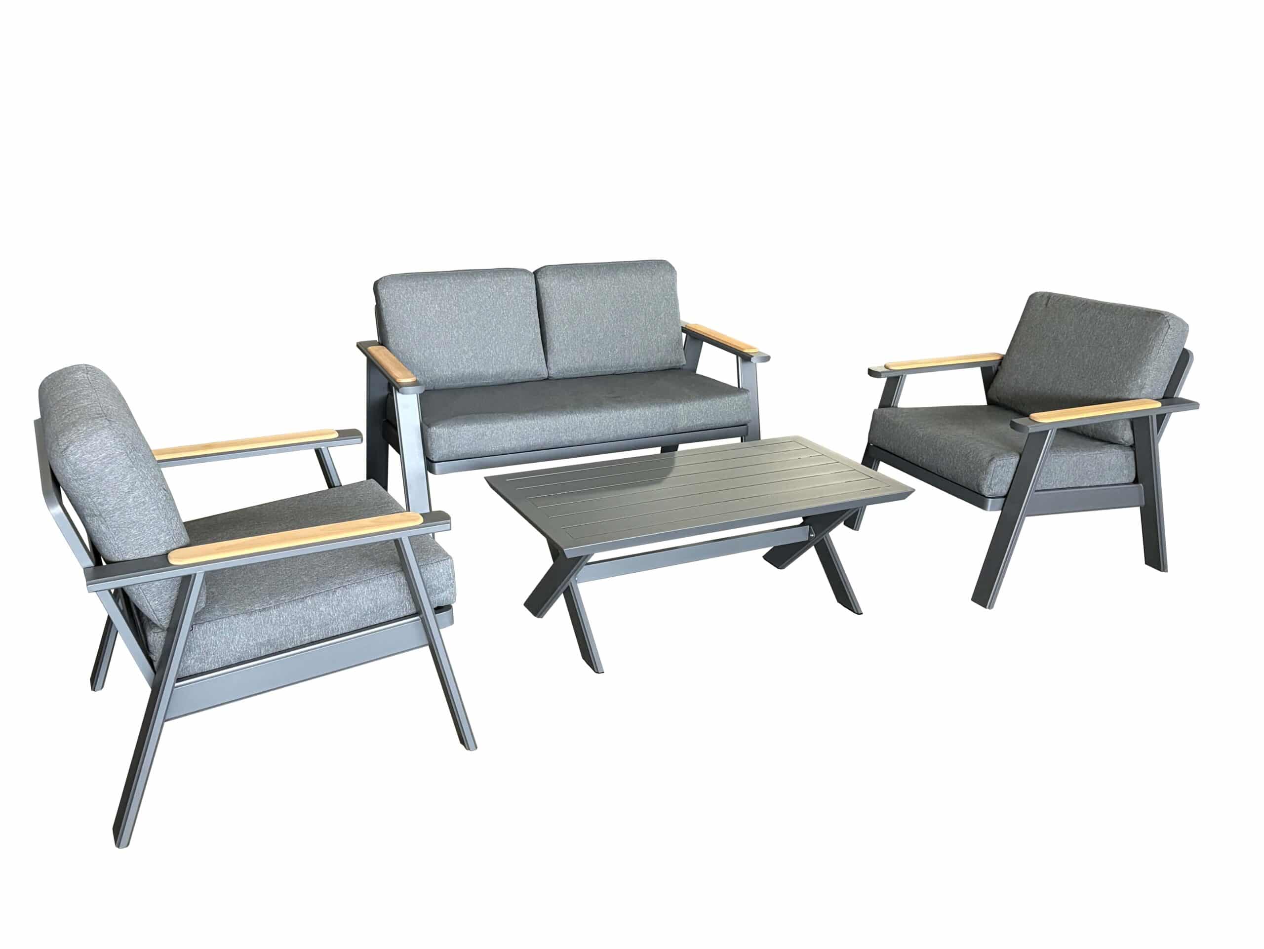 פינת ישיבה מפנקת בעלת ארבעה מושבים בעיצוב מרשים במיוחד! עשויה אלומיניום בשילוב דמוי עץ בידיות.
