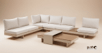 המערכת כוללת ספה פינתית רחבה ונוחה עם 6 מושבים וגב מרופדים בכריות עבות במיוחד, המעניקות תחושת ישיבה רכה ומפנקת, ושולחן קפה תואם.