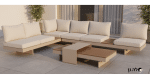 מערכת פינתית מרשימה כוללתשולחן תואם, שלדת אלומיניום עמידה וכריות ישיבה נוחות.