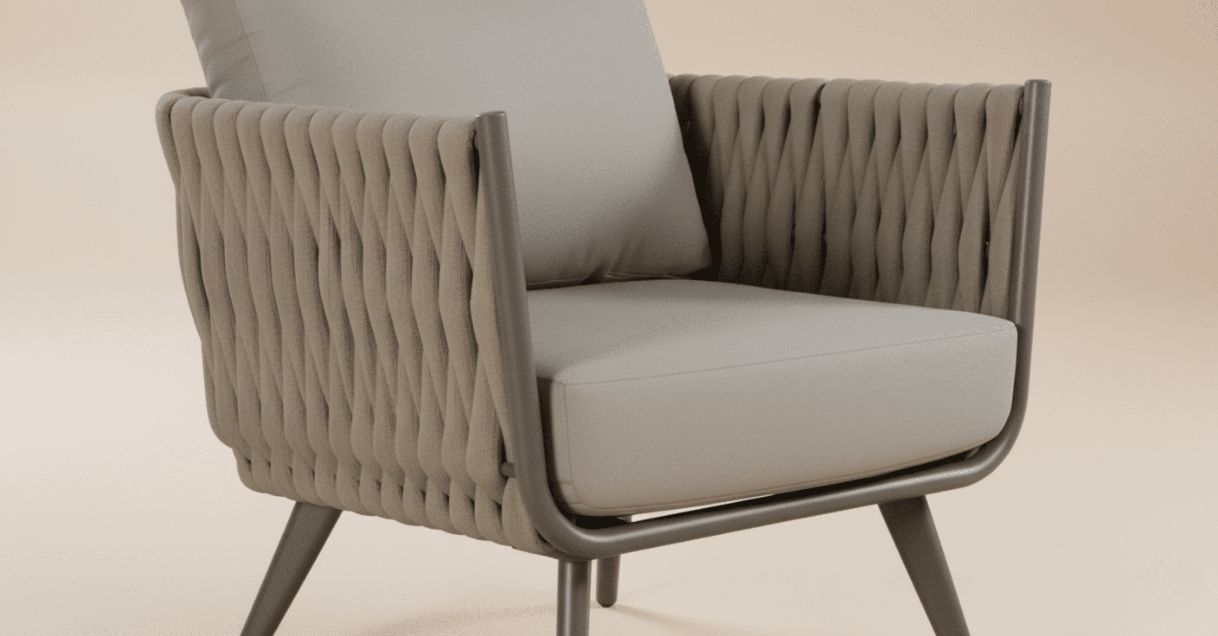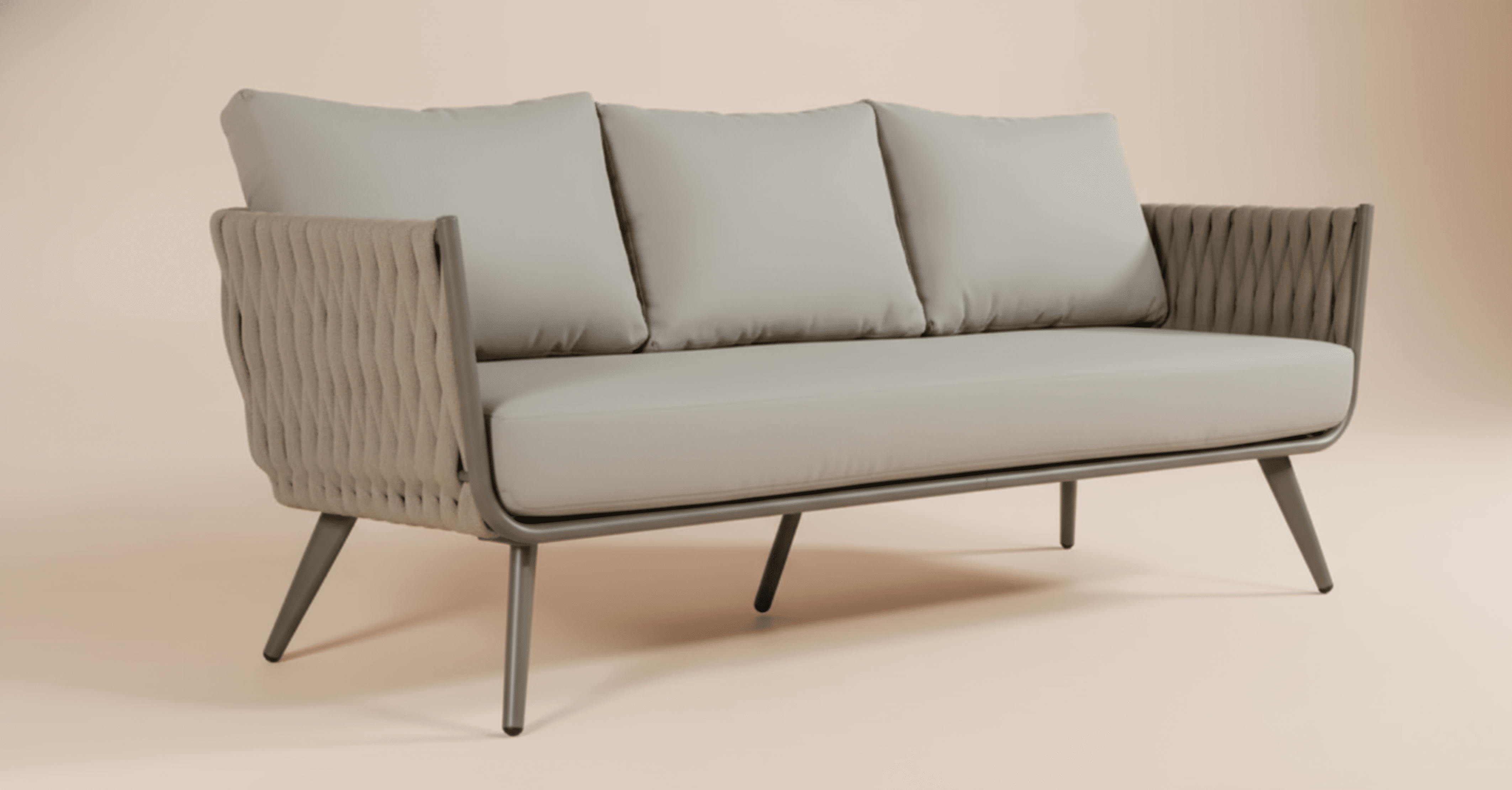 פינת ישיבה דגם לרנקה, בעלת מראה ייחודי ועיצוב מיוחד מאוד. המערכת מתאימה למרפסת או לגינה. שלדת המערכת עשויה מאלומיניום עבה ועמיד בשילוב חבלים עבים במיוחד המעניקים מראה מרשים מאוד.