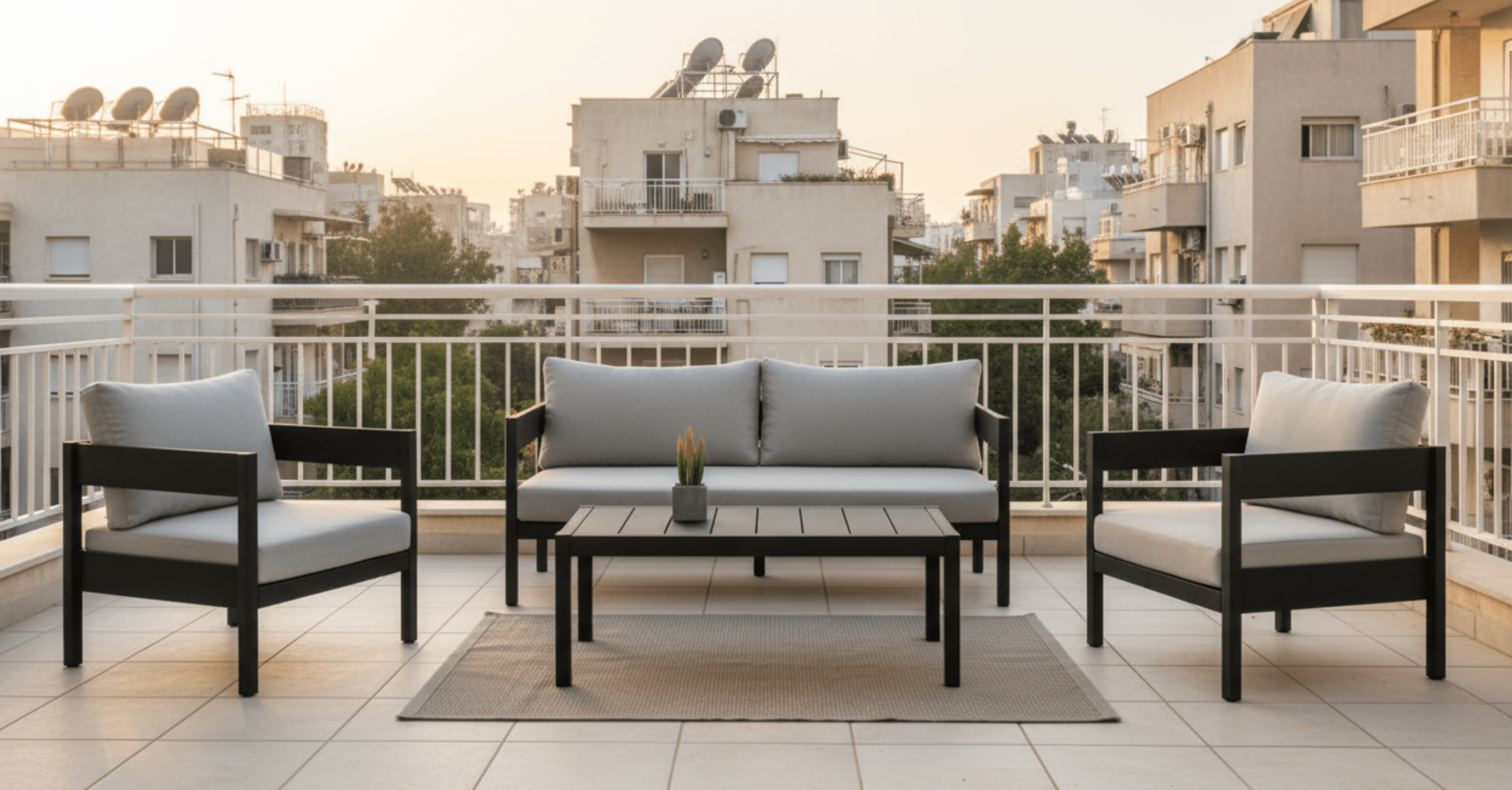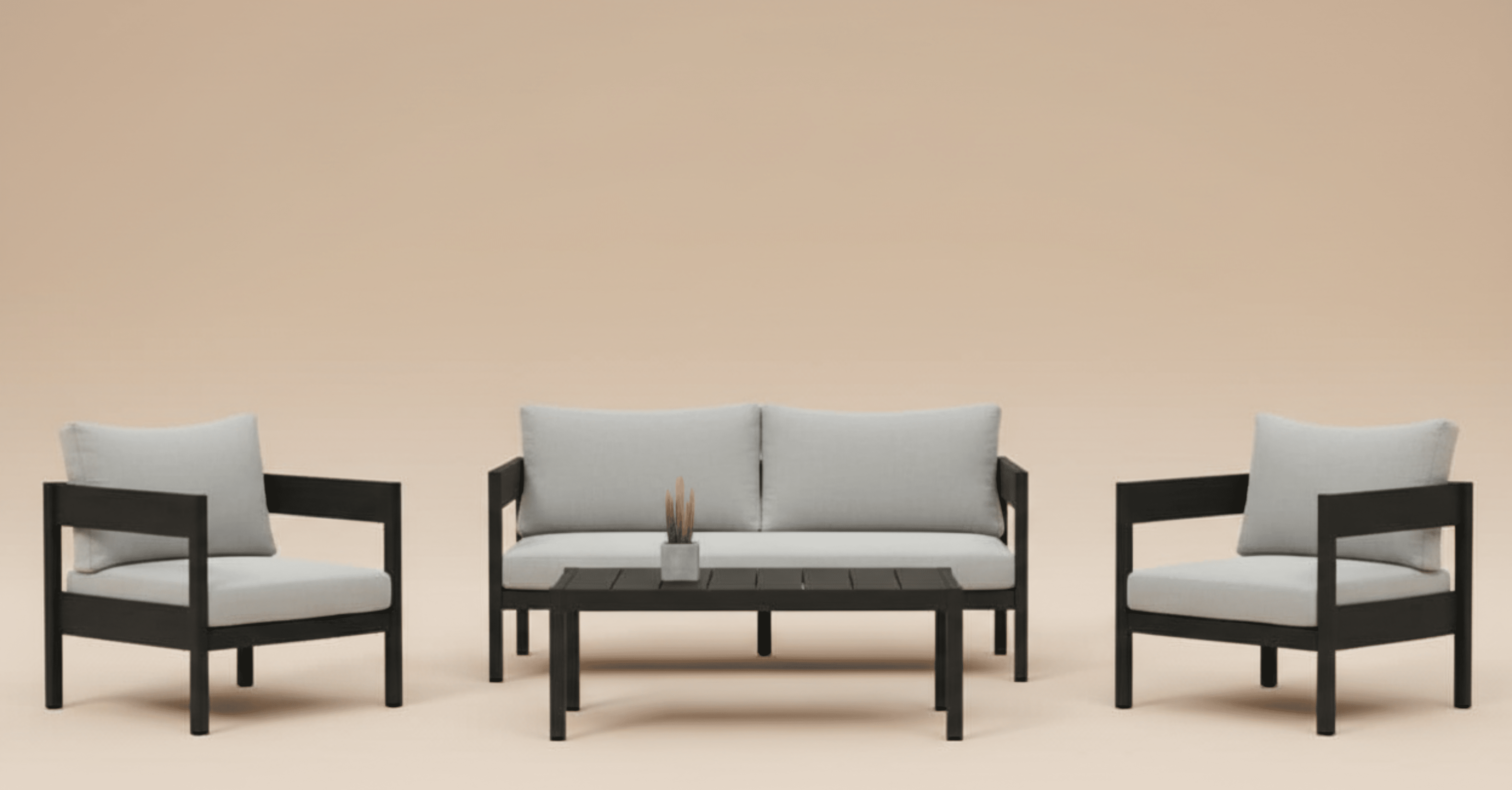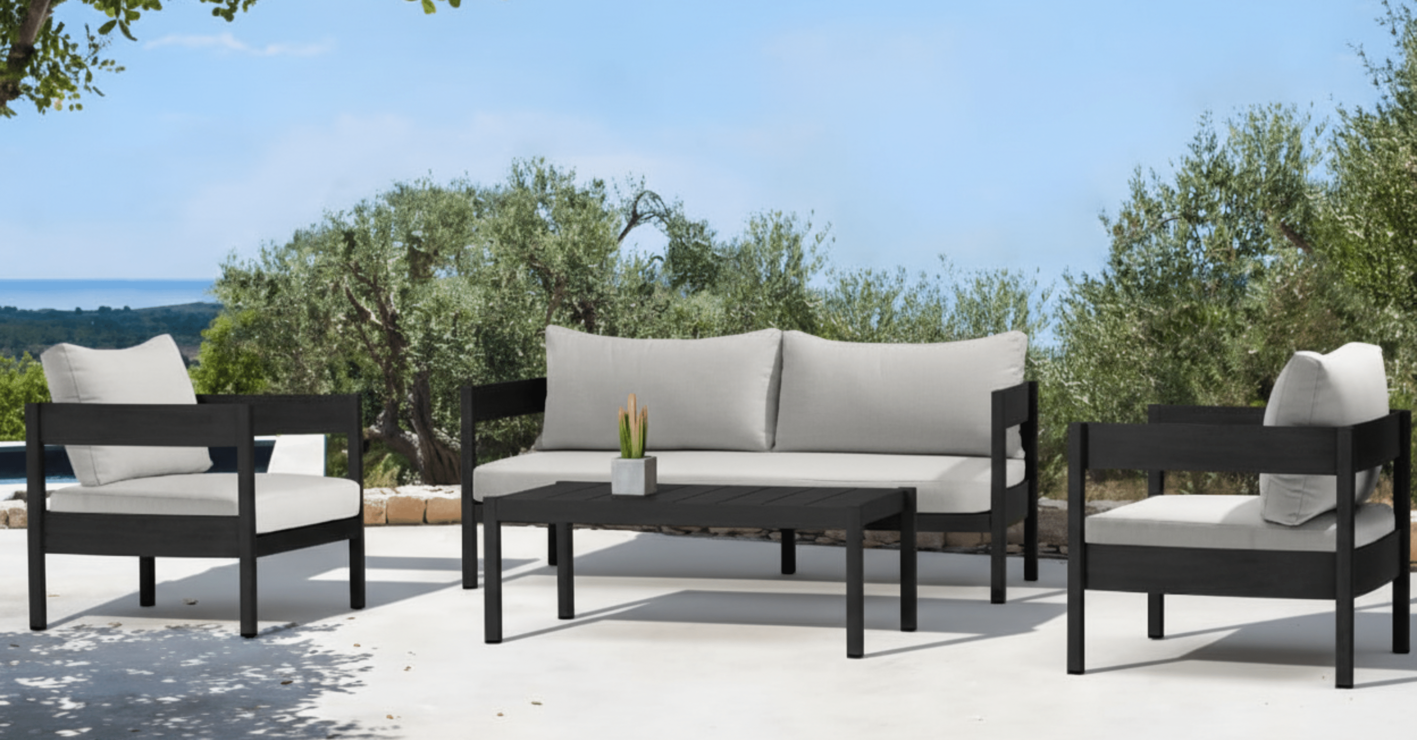 מערכת ישיבה מאלומיניום בעיצוב עכשווי, בעלת 4 מקומות ישיבה, לגינה ולמרפסת