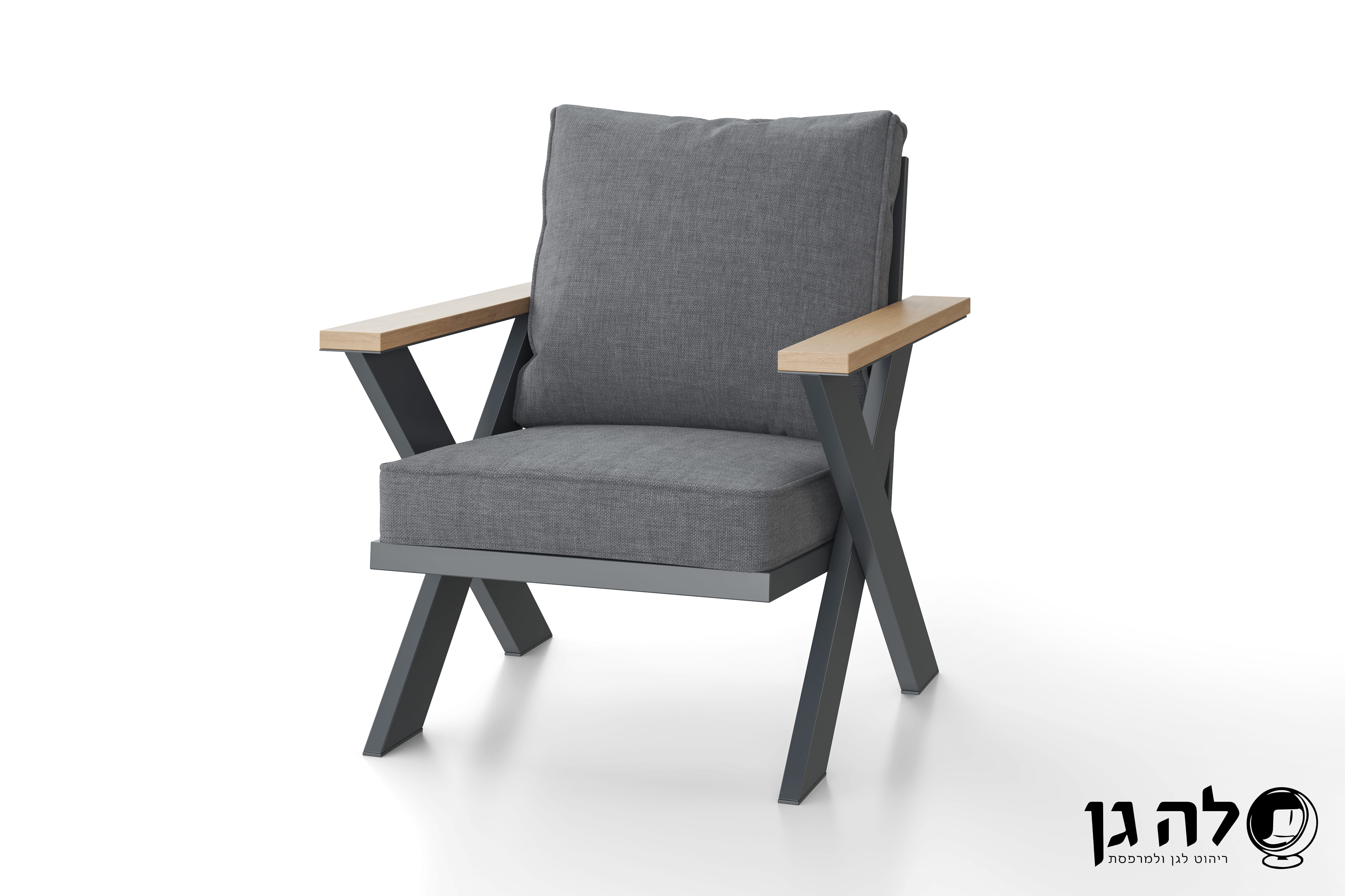 בנוסף, המערכת כוללת כריות גב ומושב עבות בגוון אפור כהה, עשויות מבד איכותי ונעים למגע. הכריות ניתנות לשליפה ולשטיפה בקלות באמצעות רוכסן נסתר בגב כל כרית.